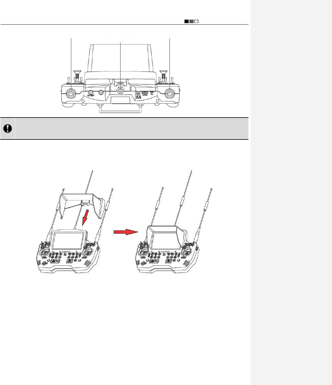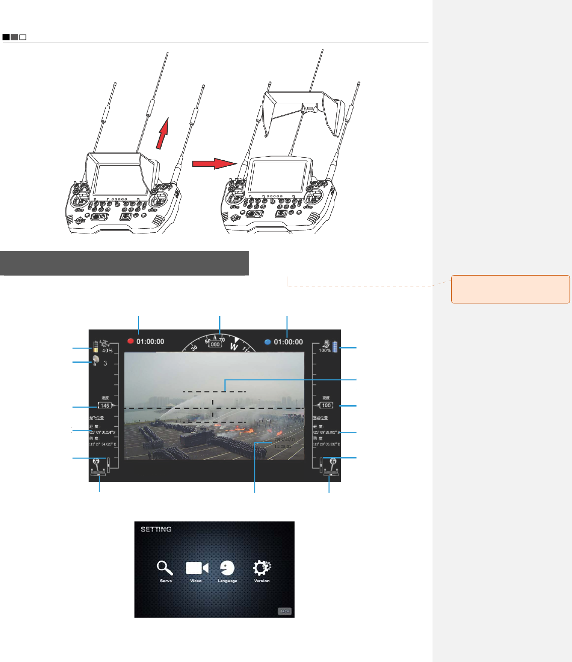 * Before flying, please make sure that the video and radio antennas have been properly installed to avoid influence