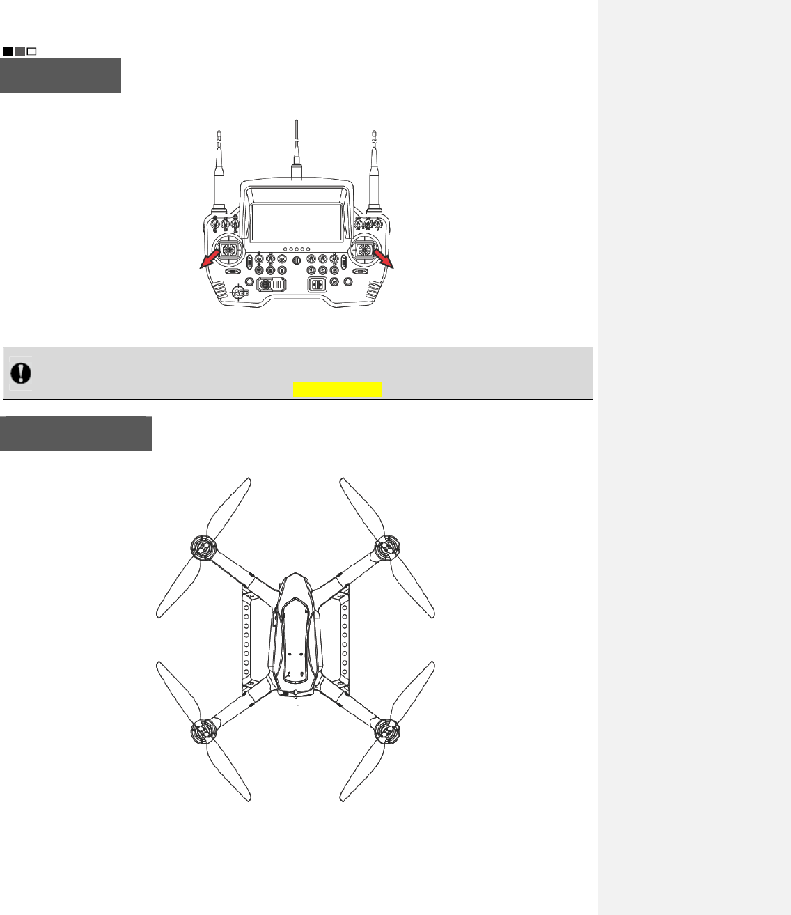 (1) Make sure the UAV is placed on a flat ground before