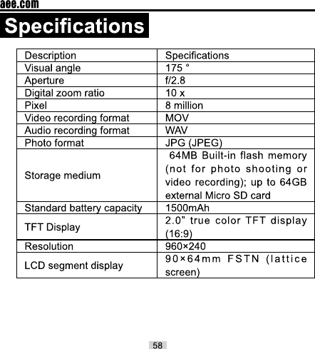 AEE Technology AEEOM51S60S Action Camcorder User Manual YVV AEE50510001 FCC Usermanual