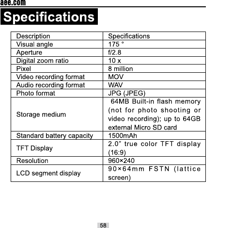 AEE Technology AEEOM51S60S Action Camcorder User Manual YVV AEE50510001 FCC Usermanual