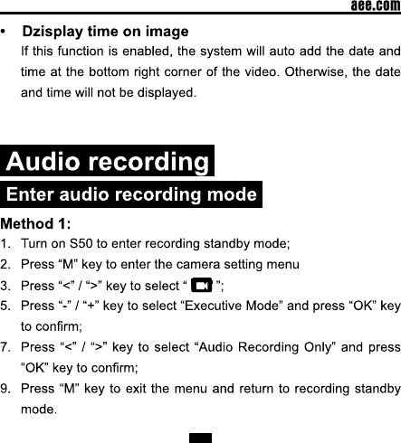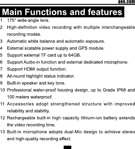 AEE Technology AEEP5100001 Action Camcorder User Manual