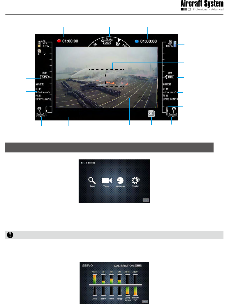 * During servo checking and joystick calibration, please make sure that the power switch of the aircraft