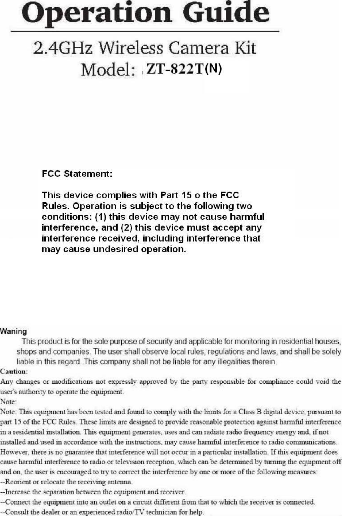 AEE Wireless Technology 822TN 2.4GHz Wireless Camera User Manual Manual rev