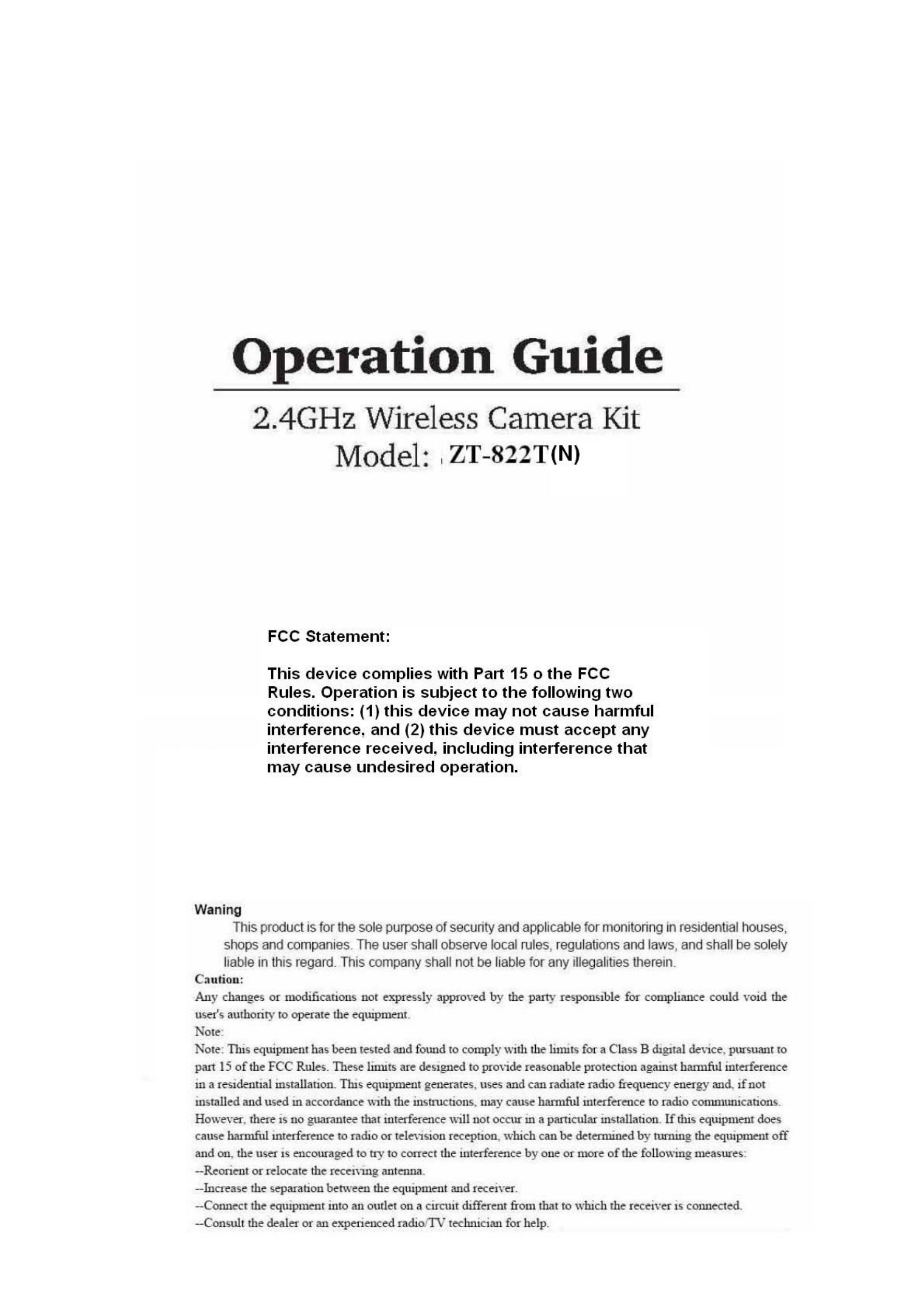 AEE Wireless Technology 822TN 2.4GHz Wireless Camera User Manual Manual rev