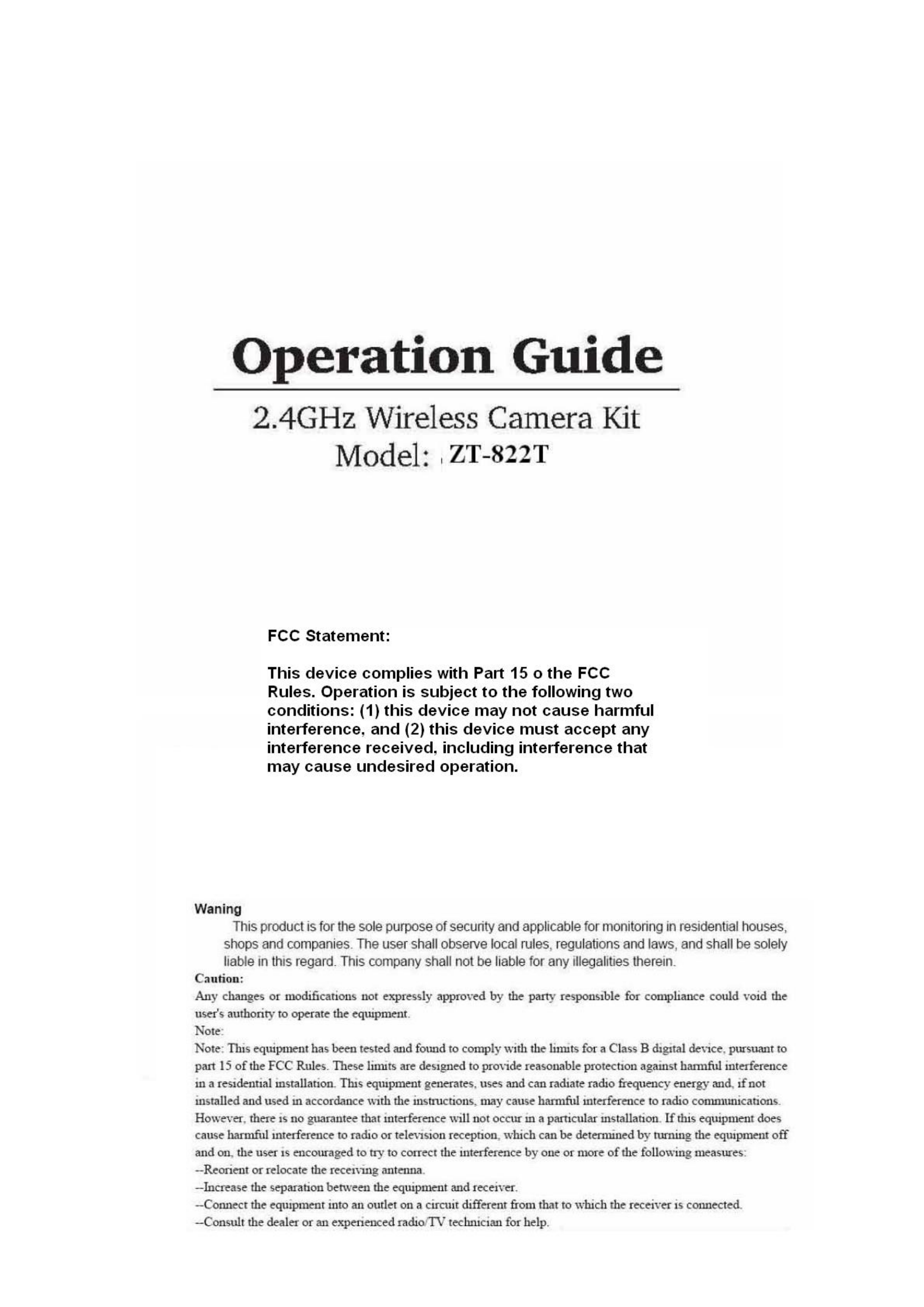 AEE Wireless Technology 822TN 2.4GHz Wireless Camera User Manual Manual