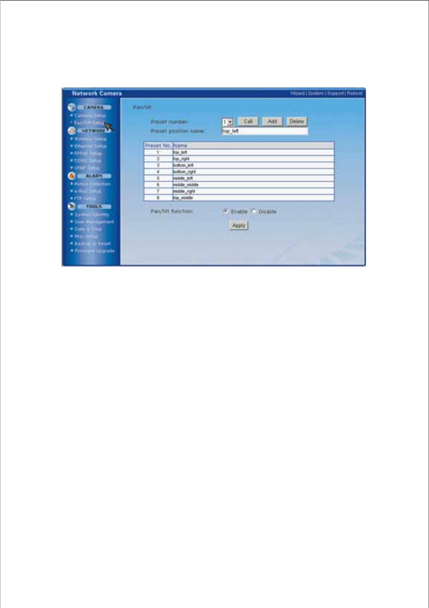 Enter the setting interface to enable the Pan/Tilt function.