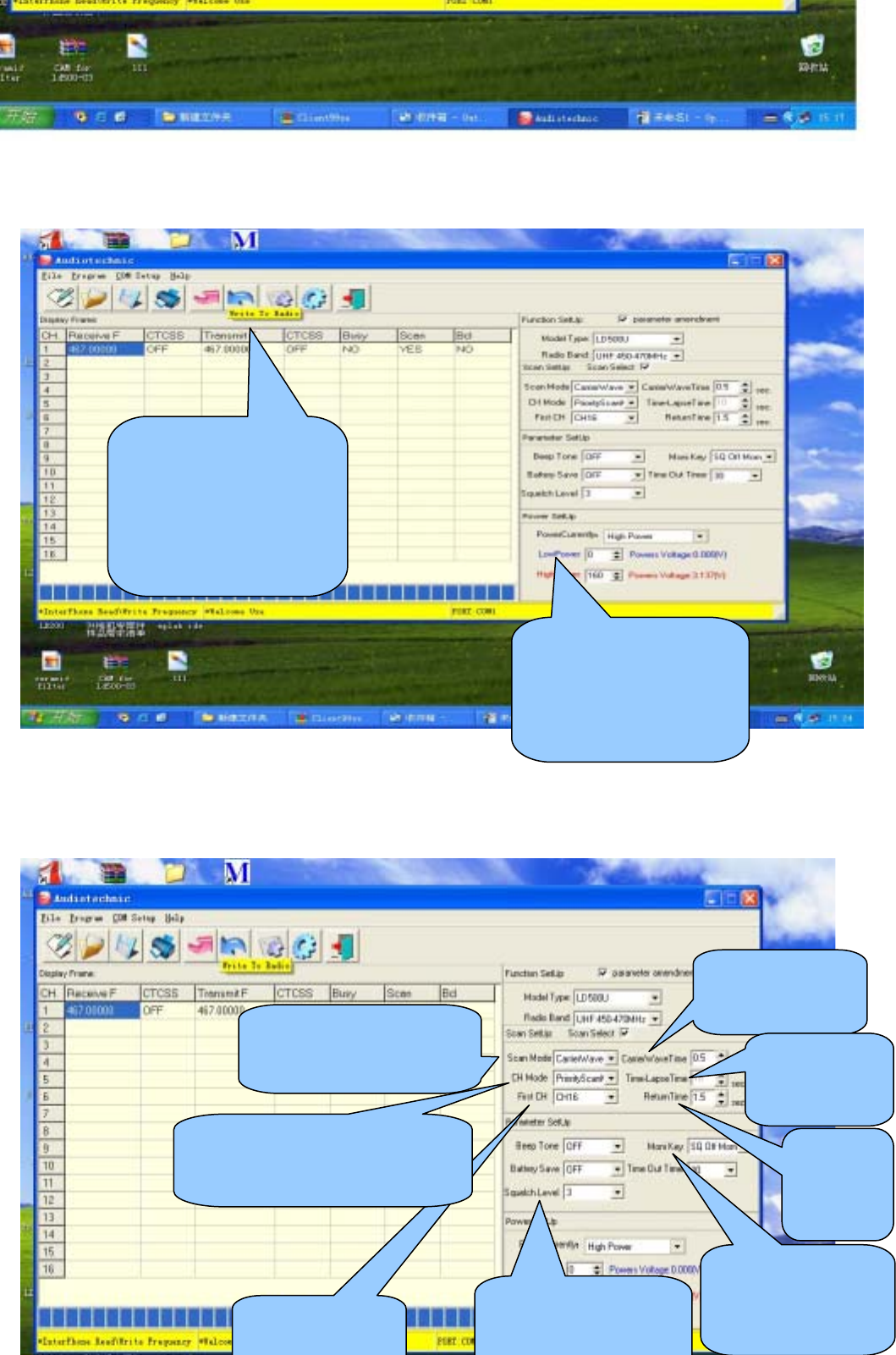 6.If you alter the parameter of 'high power', the output power of radio will be changed, eg. The 255 is the