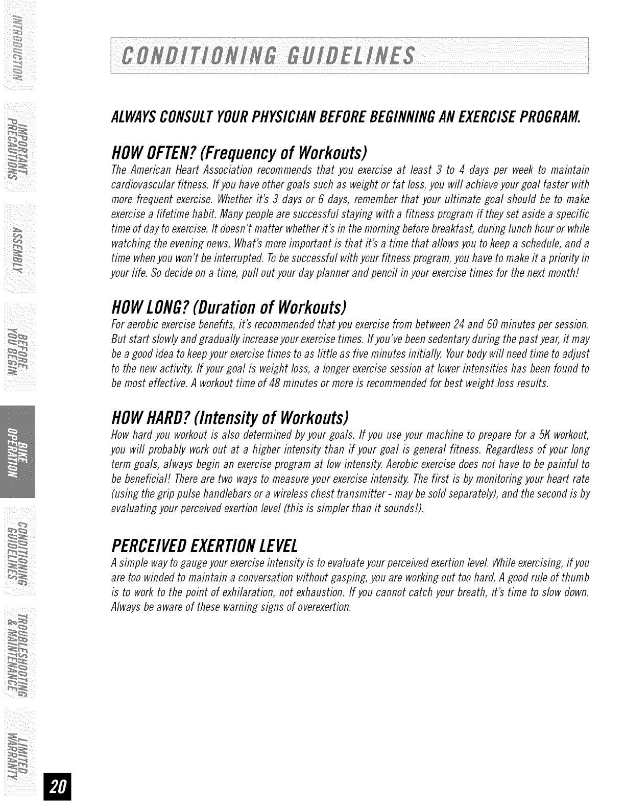 Conditioning Guidelines 20