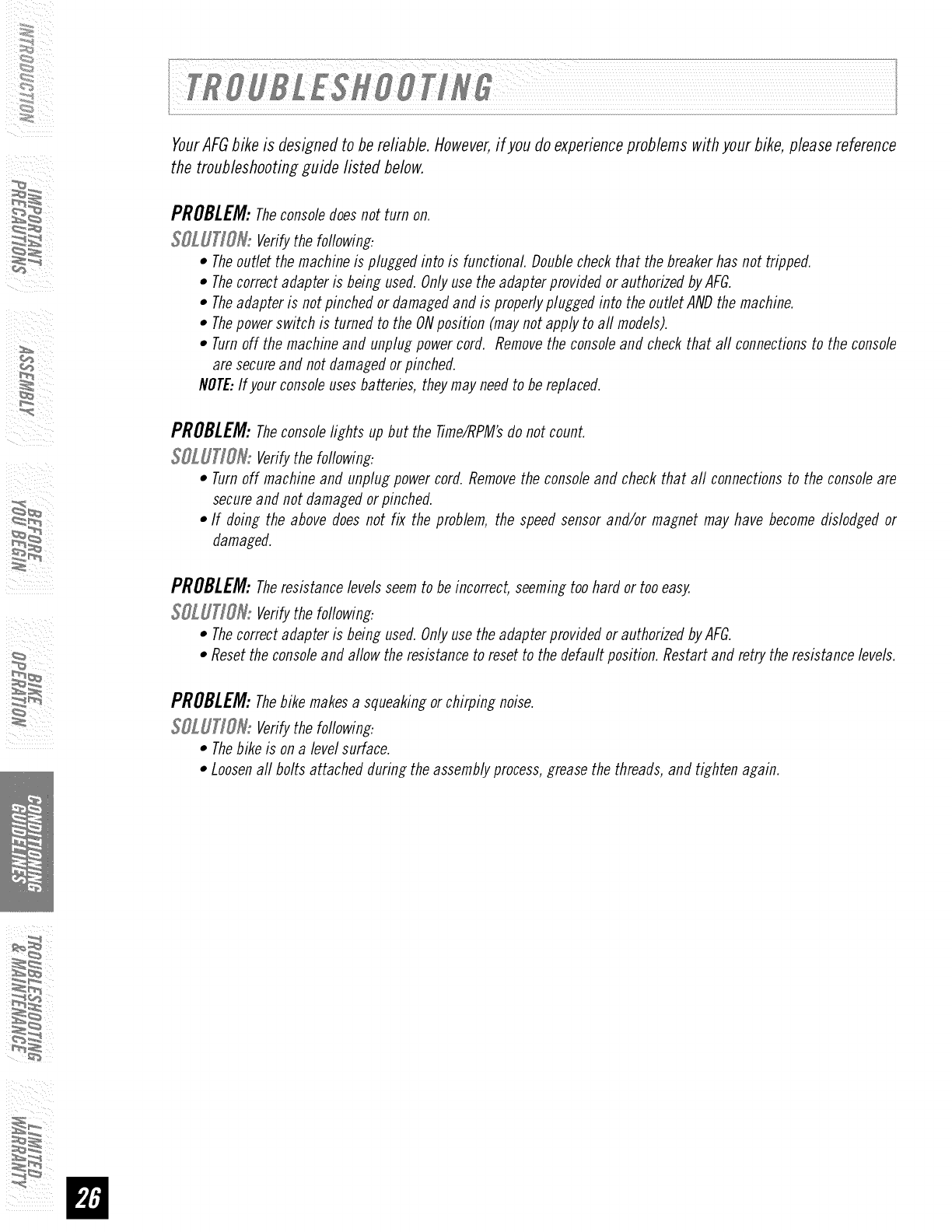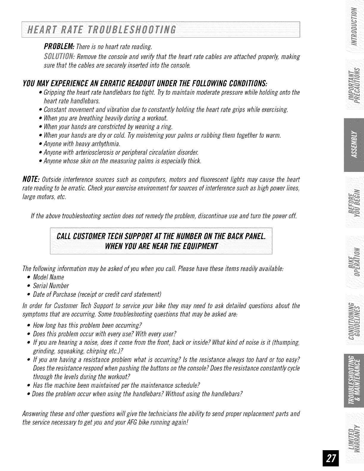 AFG 2.0AR User Manual RECUMBENT BIKE Manuals And Guides 1110326L