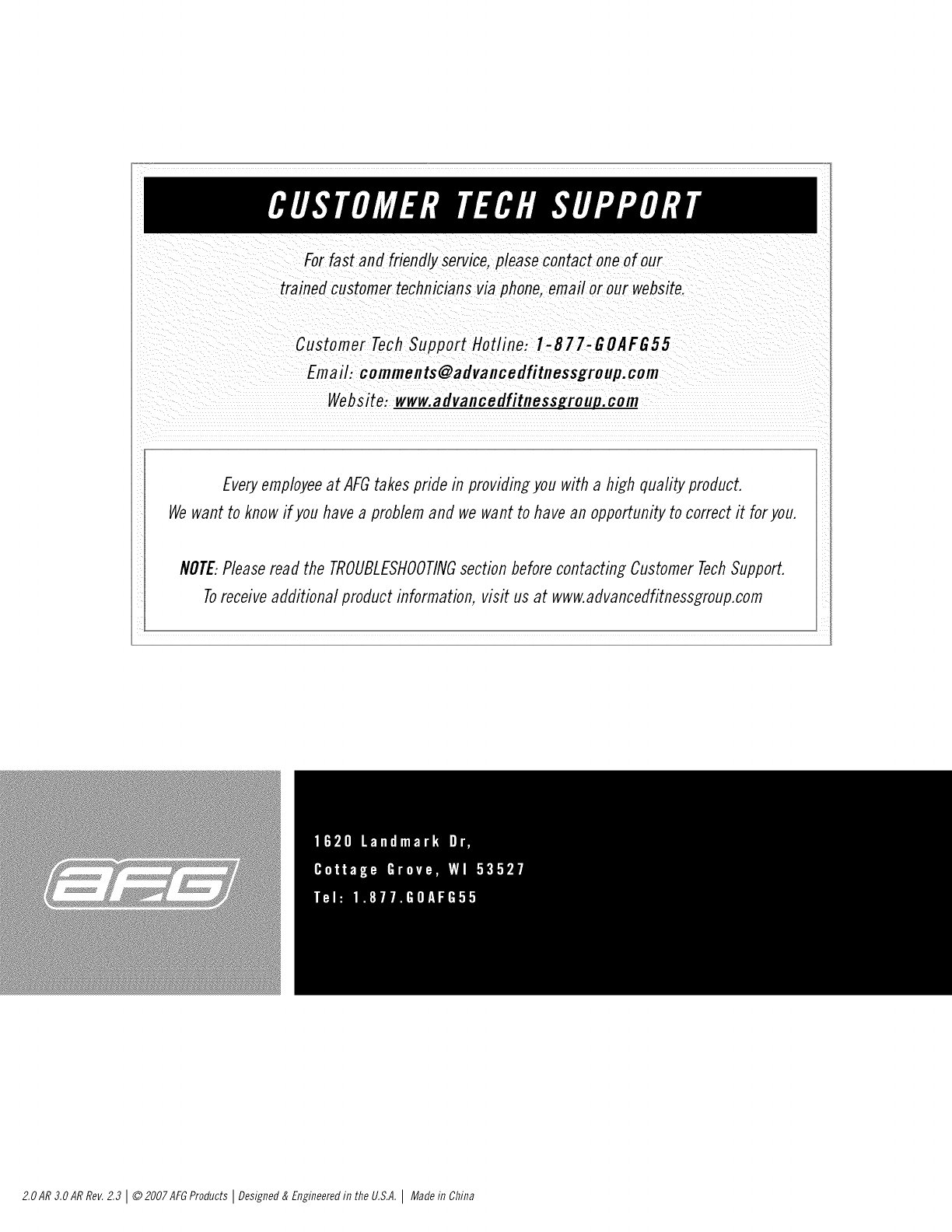 2.OAR3.OARRev.Z3 I© 2007AFGProductsIDesigned&Engineeredin the U.S.A.IMadein China