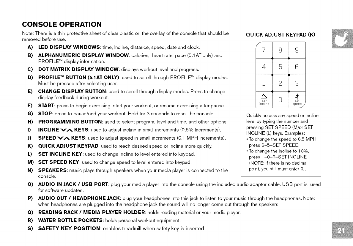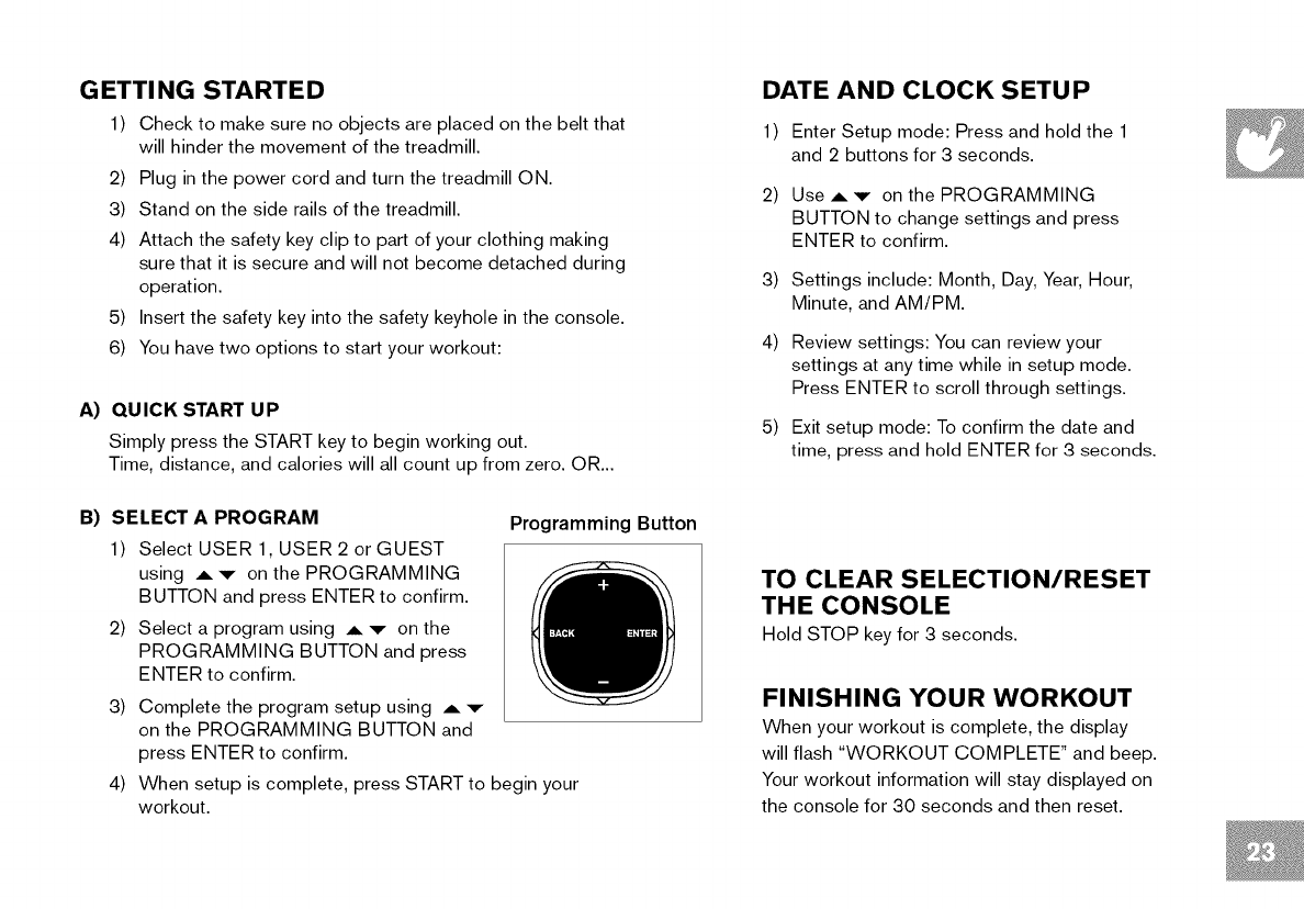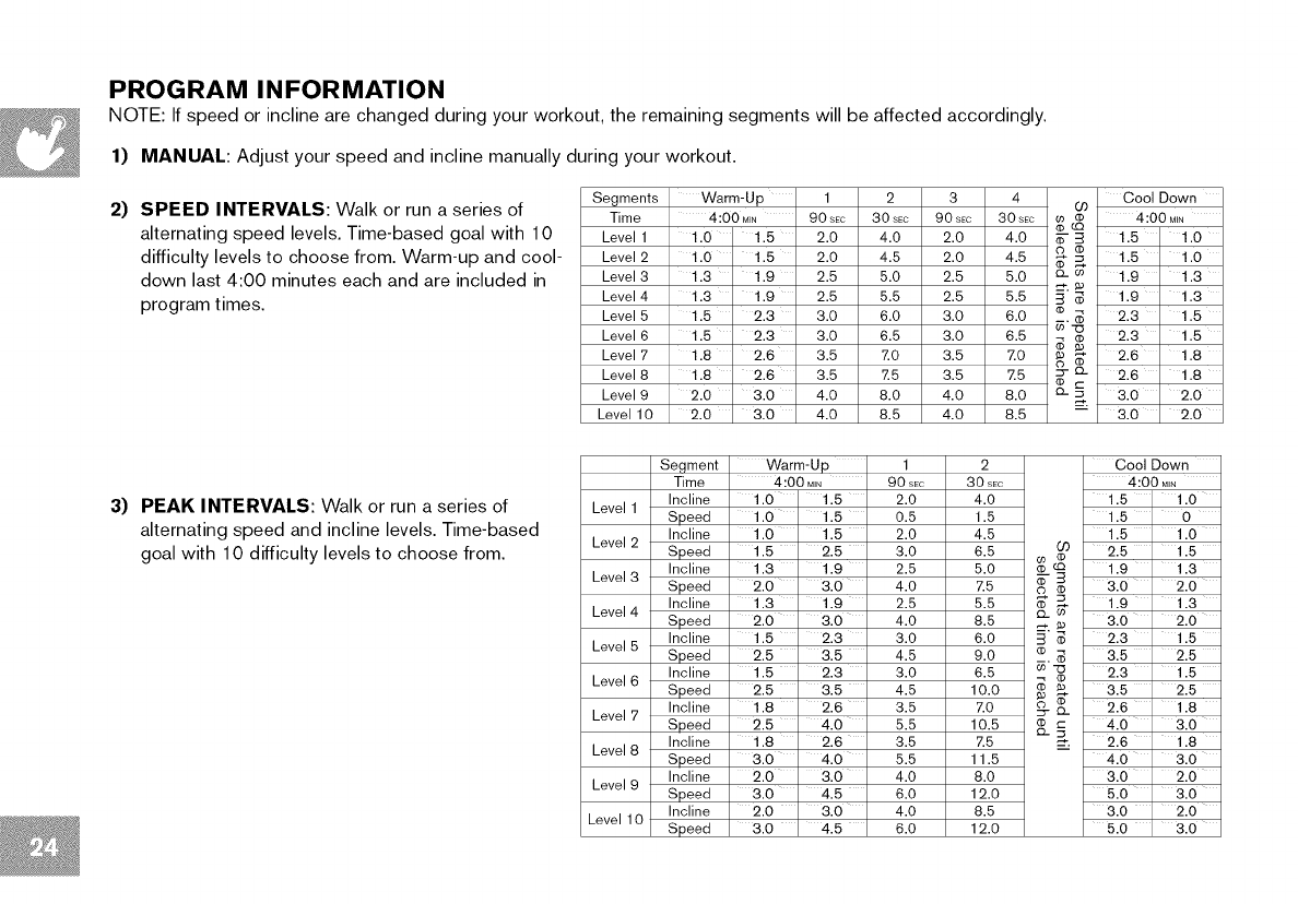 section in the TREADMILL GUIDE before