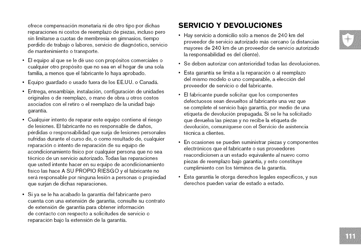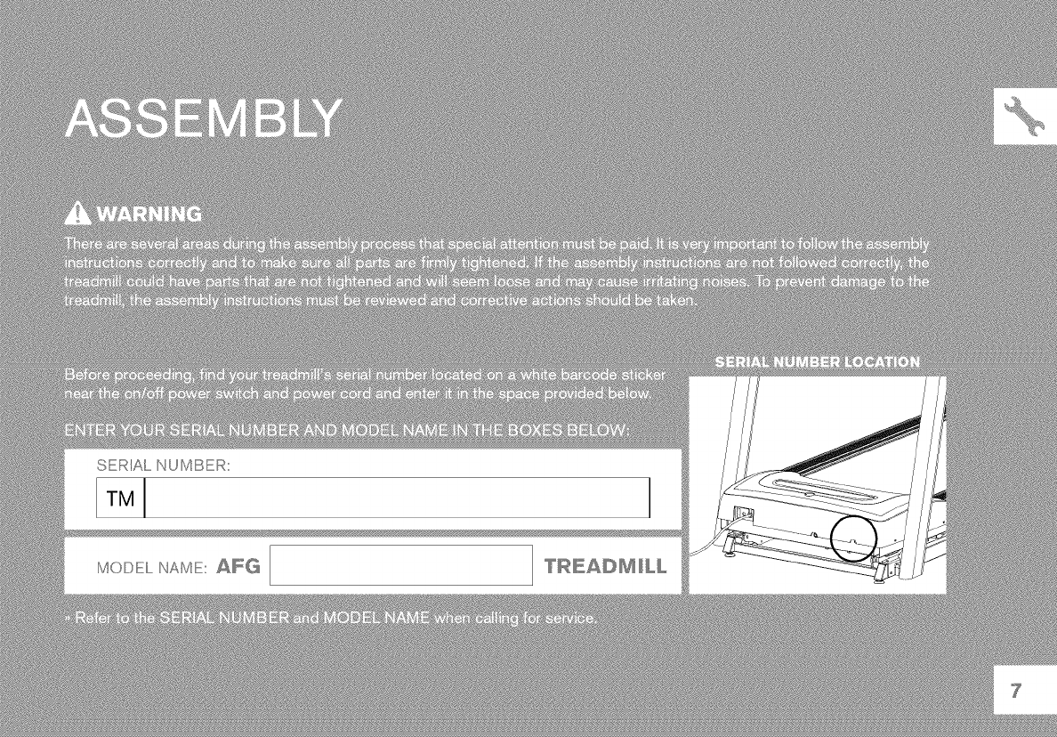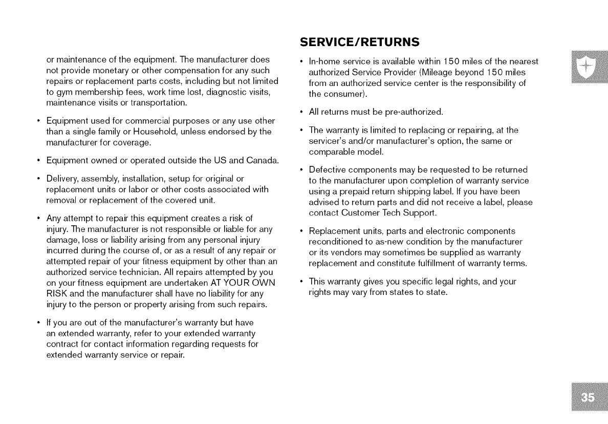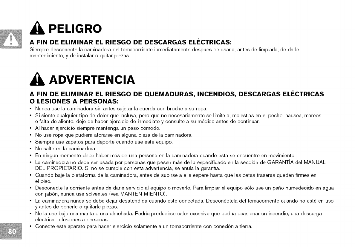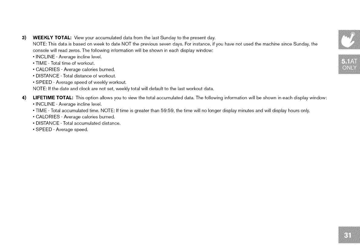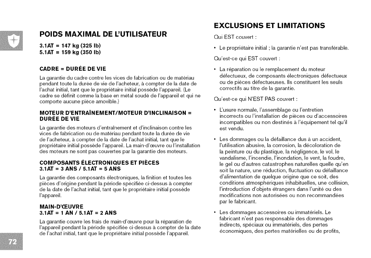 • This treadmill should not be used by persons weighing more than specified in the OWNER'S MANUAL WARRANTY SECTION.