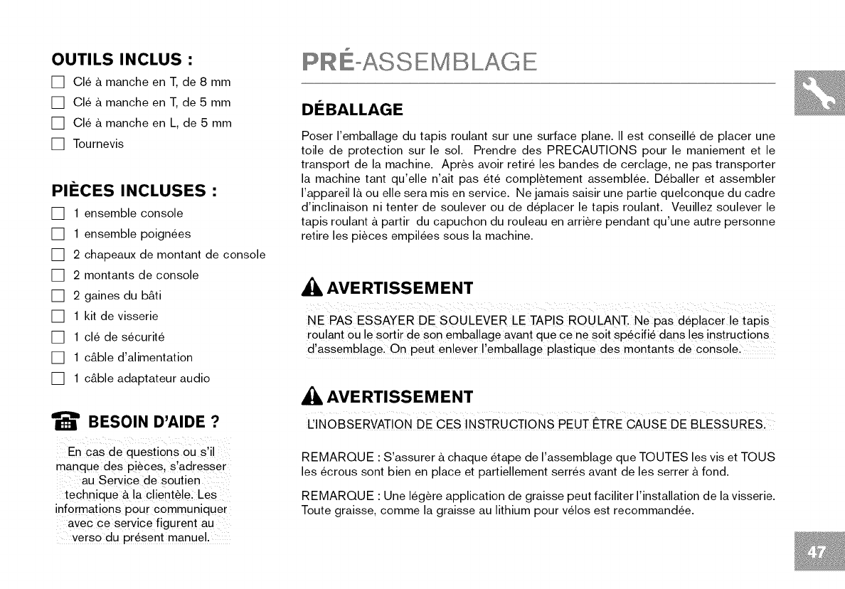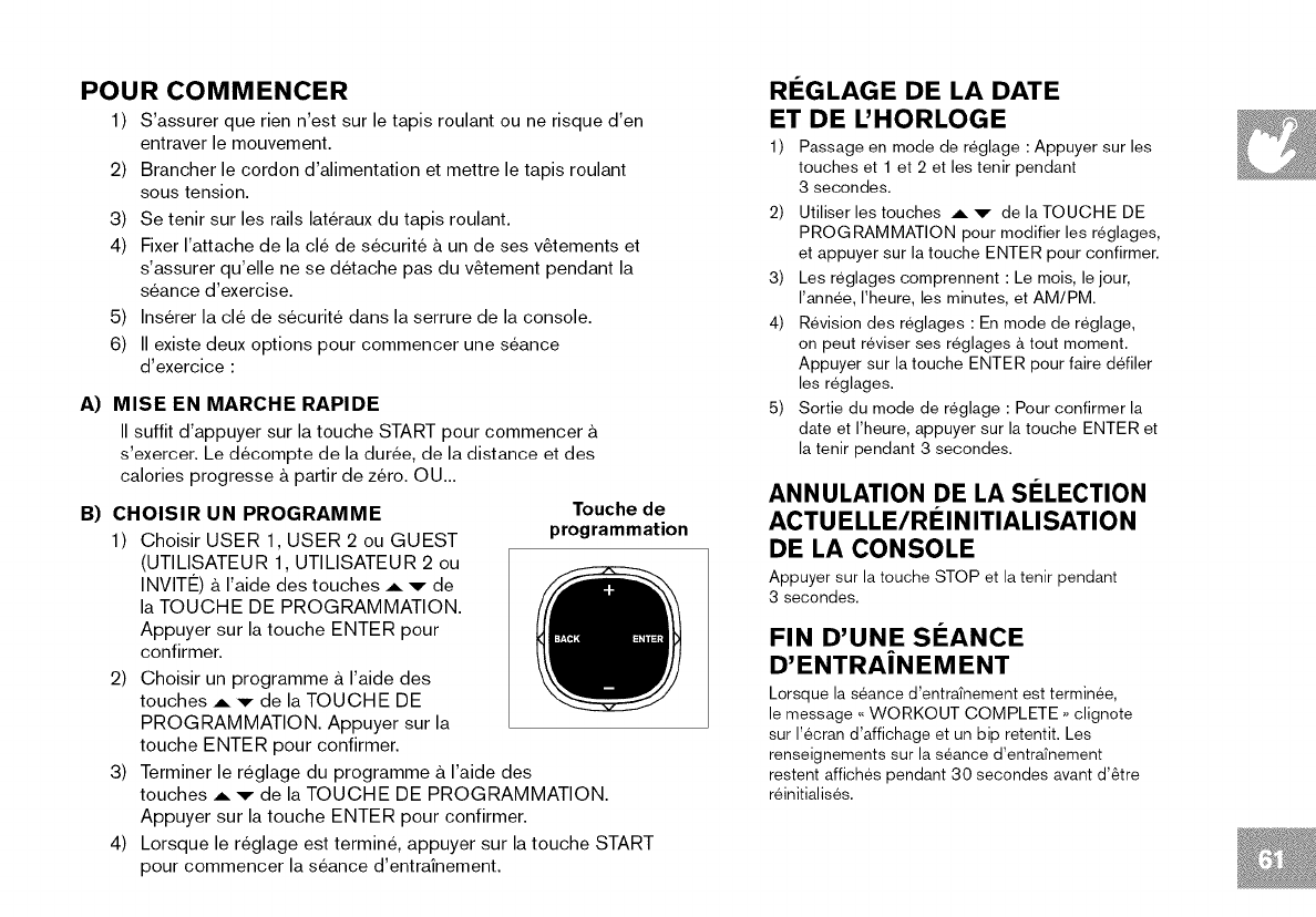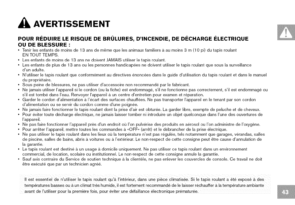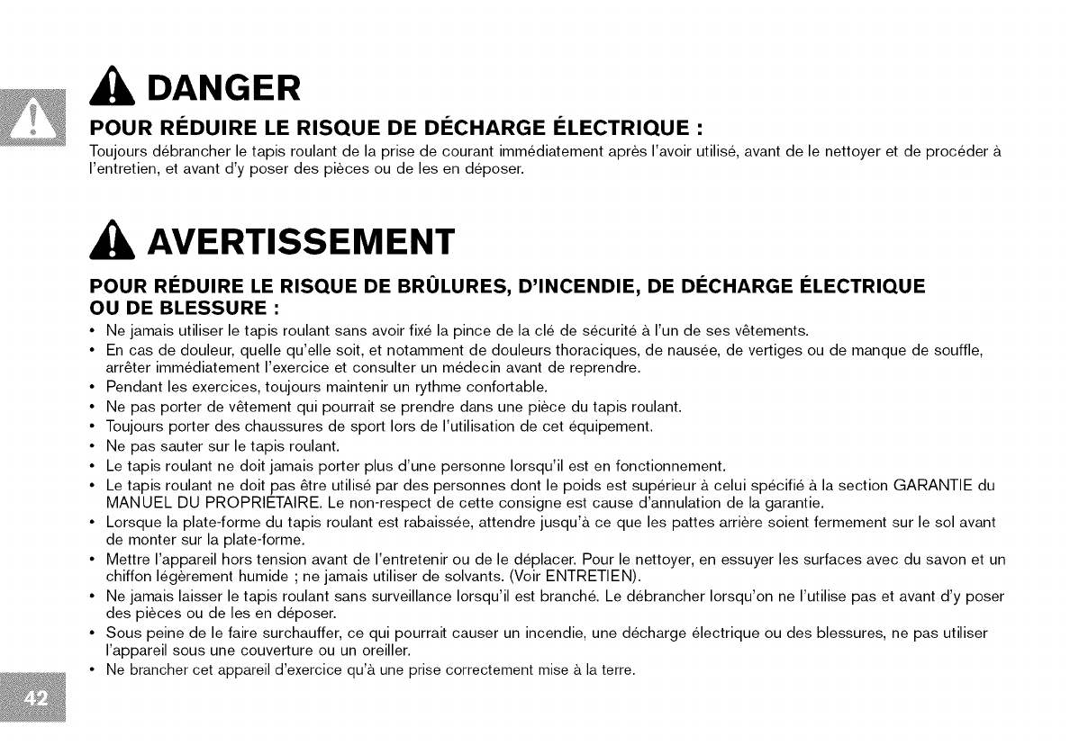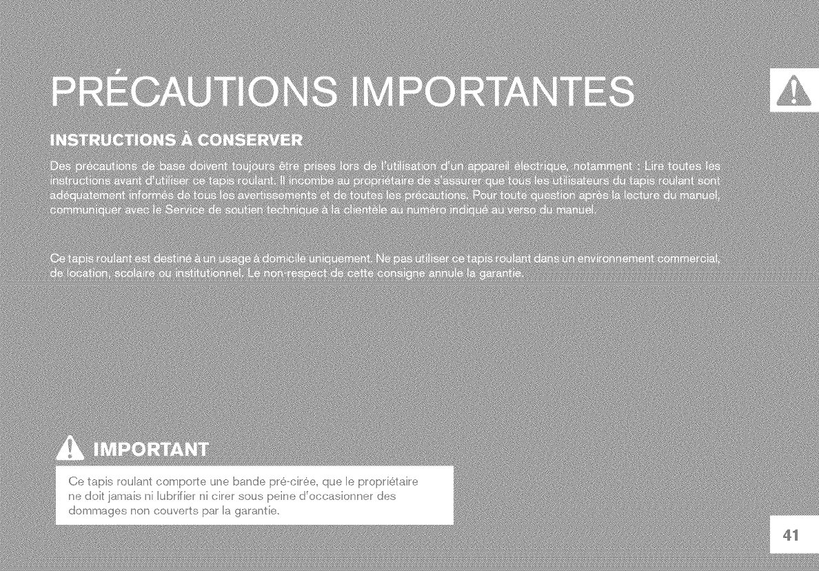 Lire le GUIDE DU TAPIS ROULANT avant de se servir du present MANUEL DU PROPRII_TAIRE.