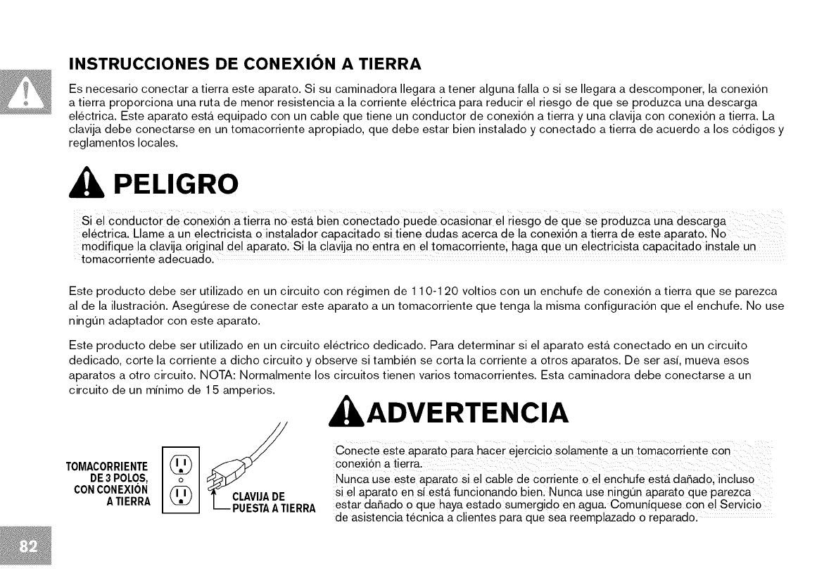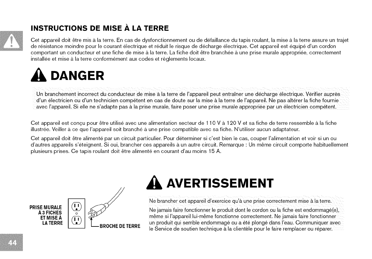 This product must be grounded. If a treadmill should malfunction or break down, grounding provides a path of least resistance