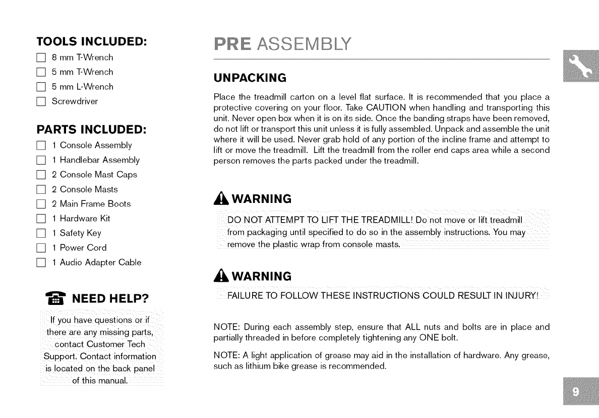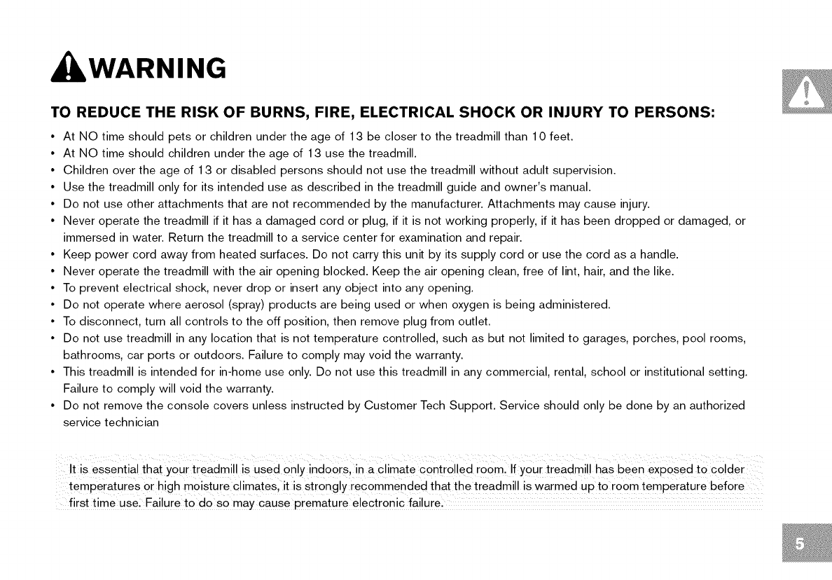 temperatures or high moisture climates, it is strongly recommended that the treadmill is warmed Up to roo m temperature before ....