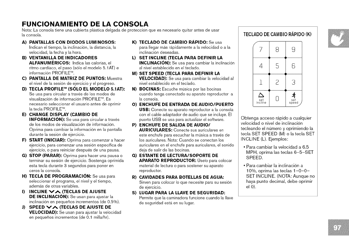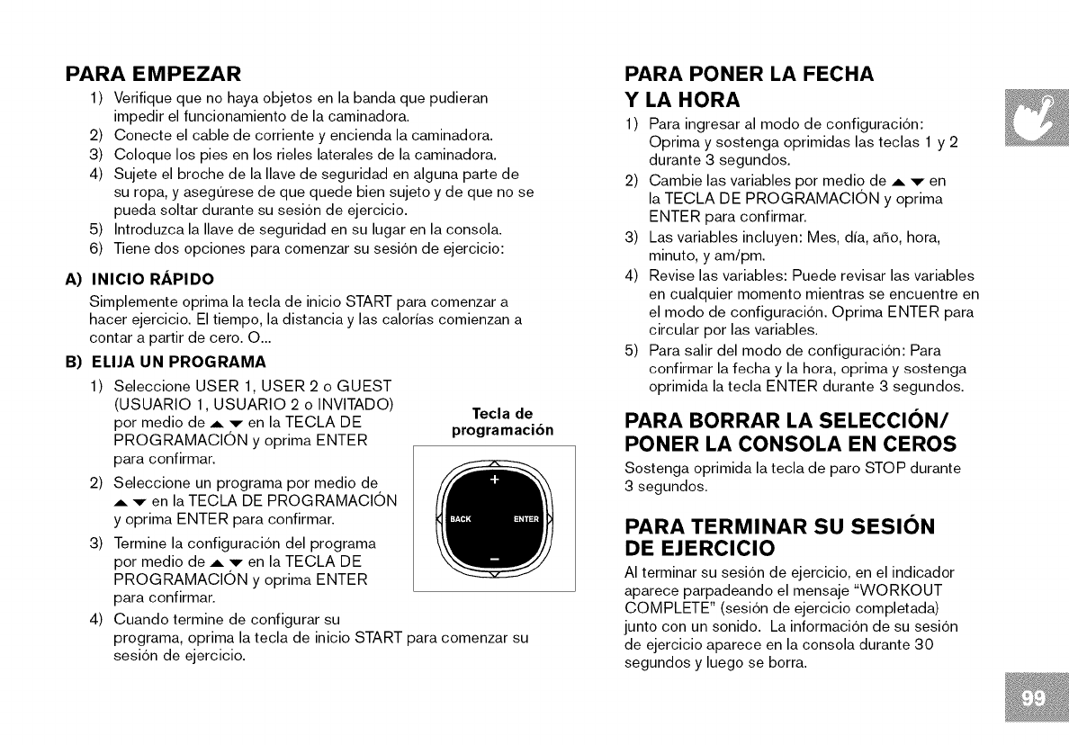 la GUIA DEL USUARIO DE LA CAMINADORA. Duede enconTrar
