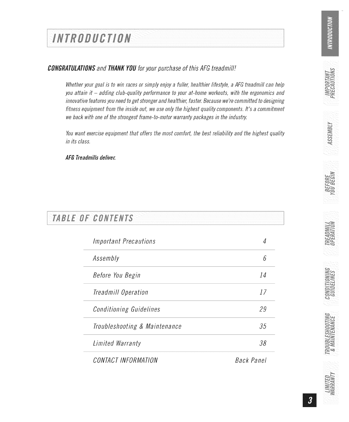CONGRATULATIONSand THANKYOUforyourpurchaseof this AFGtreadmill!