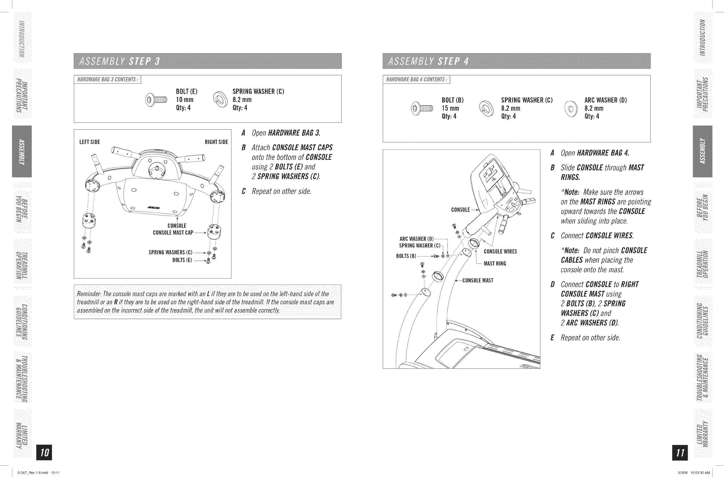 mthe COnSole masts or any forward and backplay rn the console assernblyorhandlebars. If there !s any