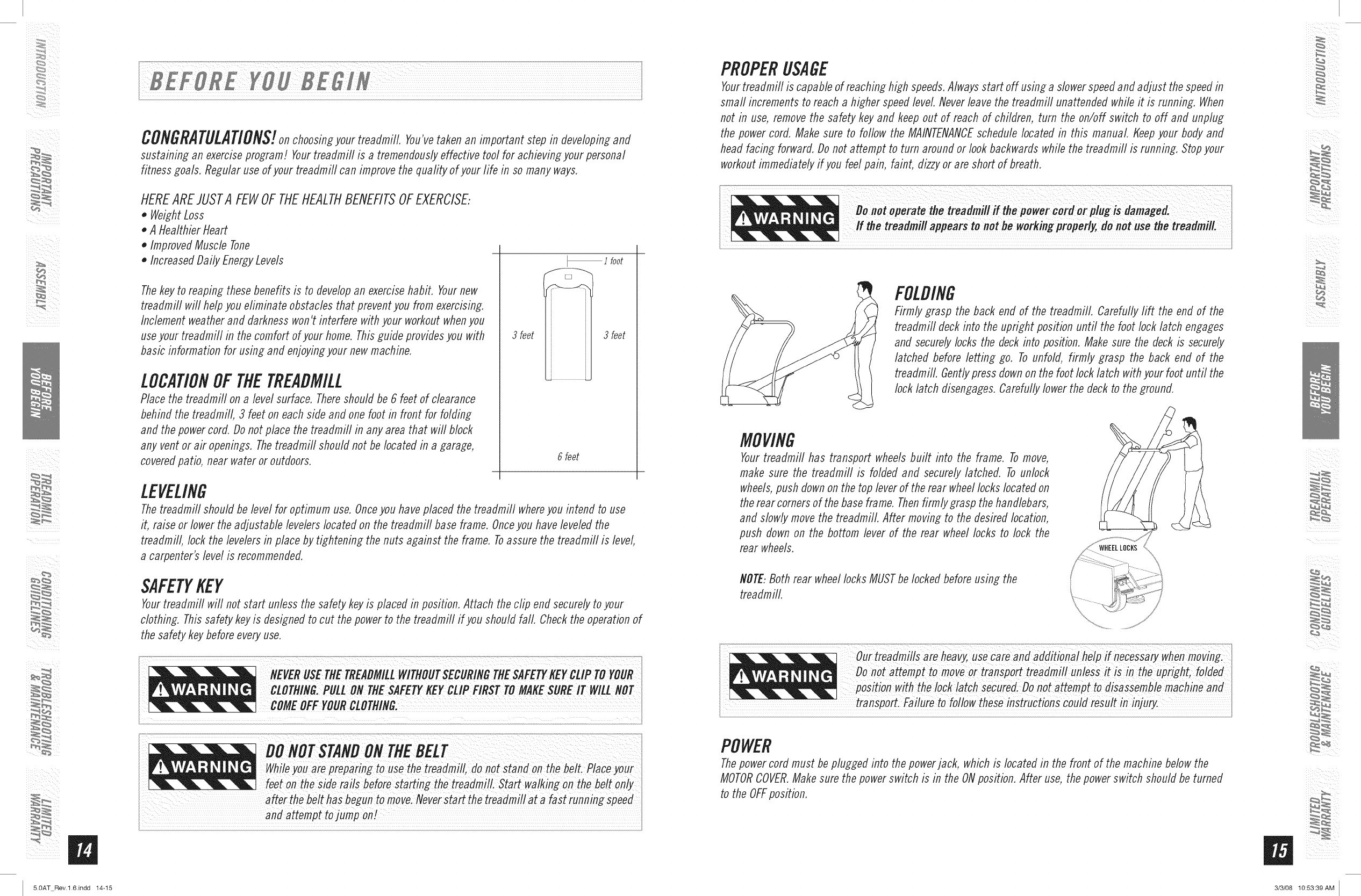 ,, Never use the treadmill before securing the safety tether clip to your clothing.