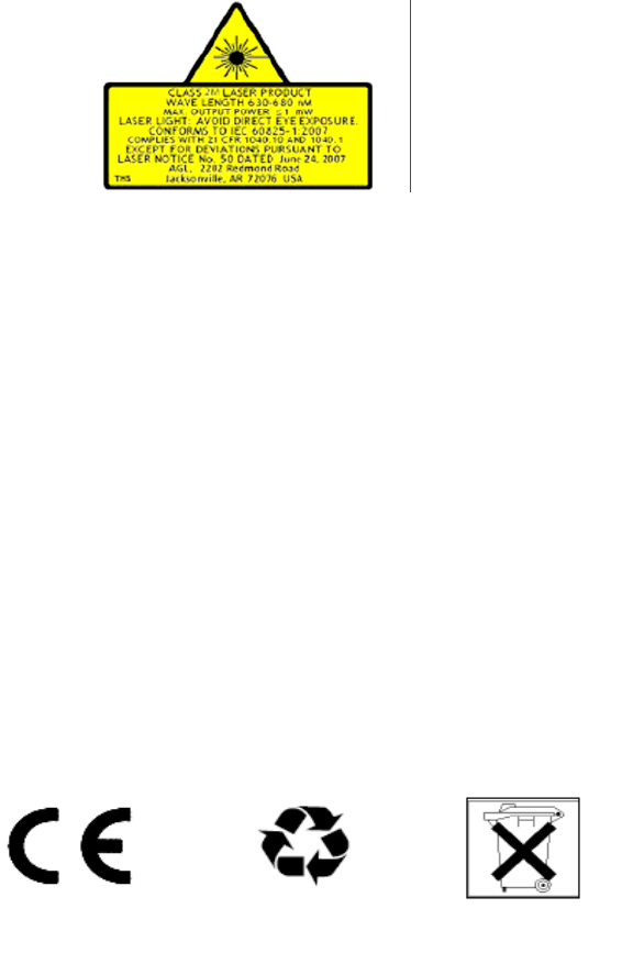 cause hazardous laser radiation. Only AGL certified service centers are entitled to
