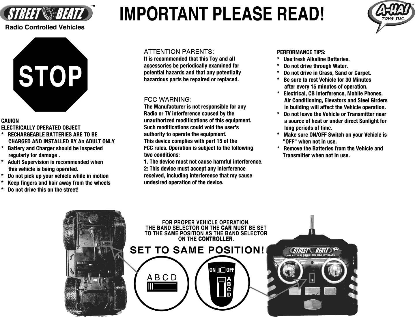 AHA Toys 27MHZ00190 Remote Control Toy User Manual