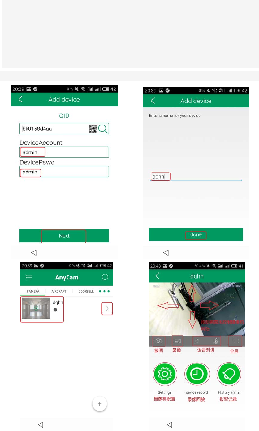 2.1.2 、Enter user name and password of the camera (user name, password,