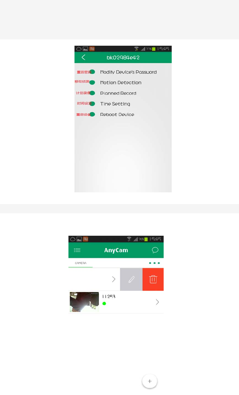 make your phone connect to the WIFI, run "Anycam", register and login into
