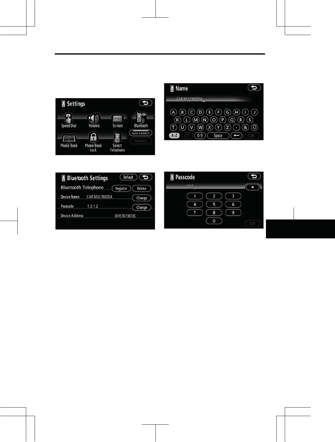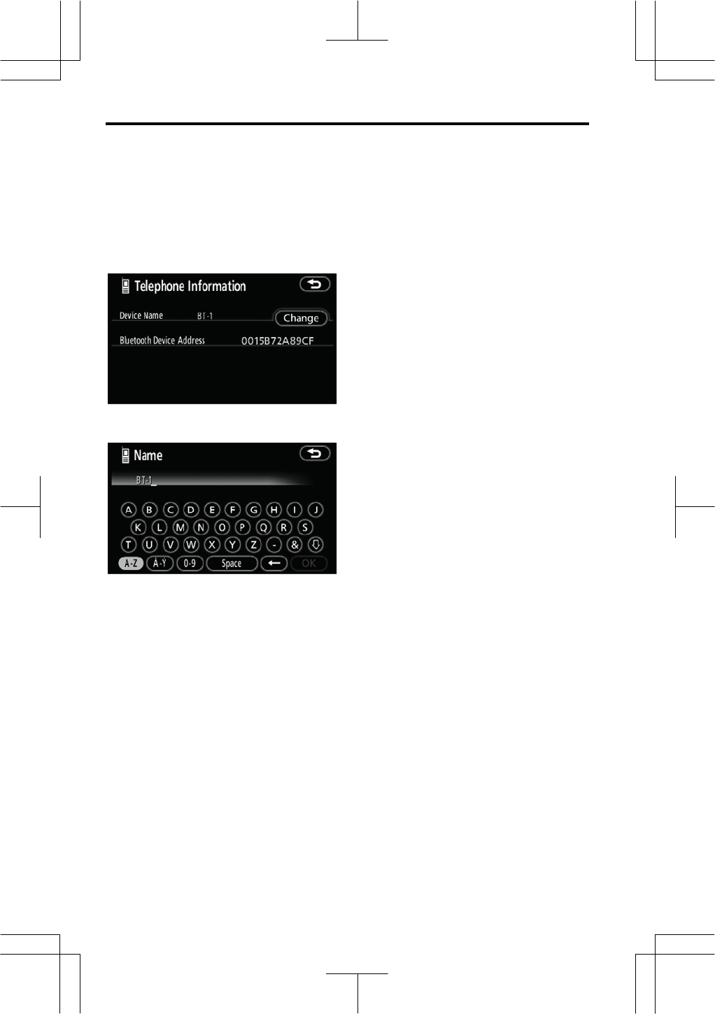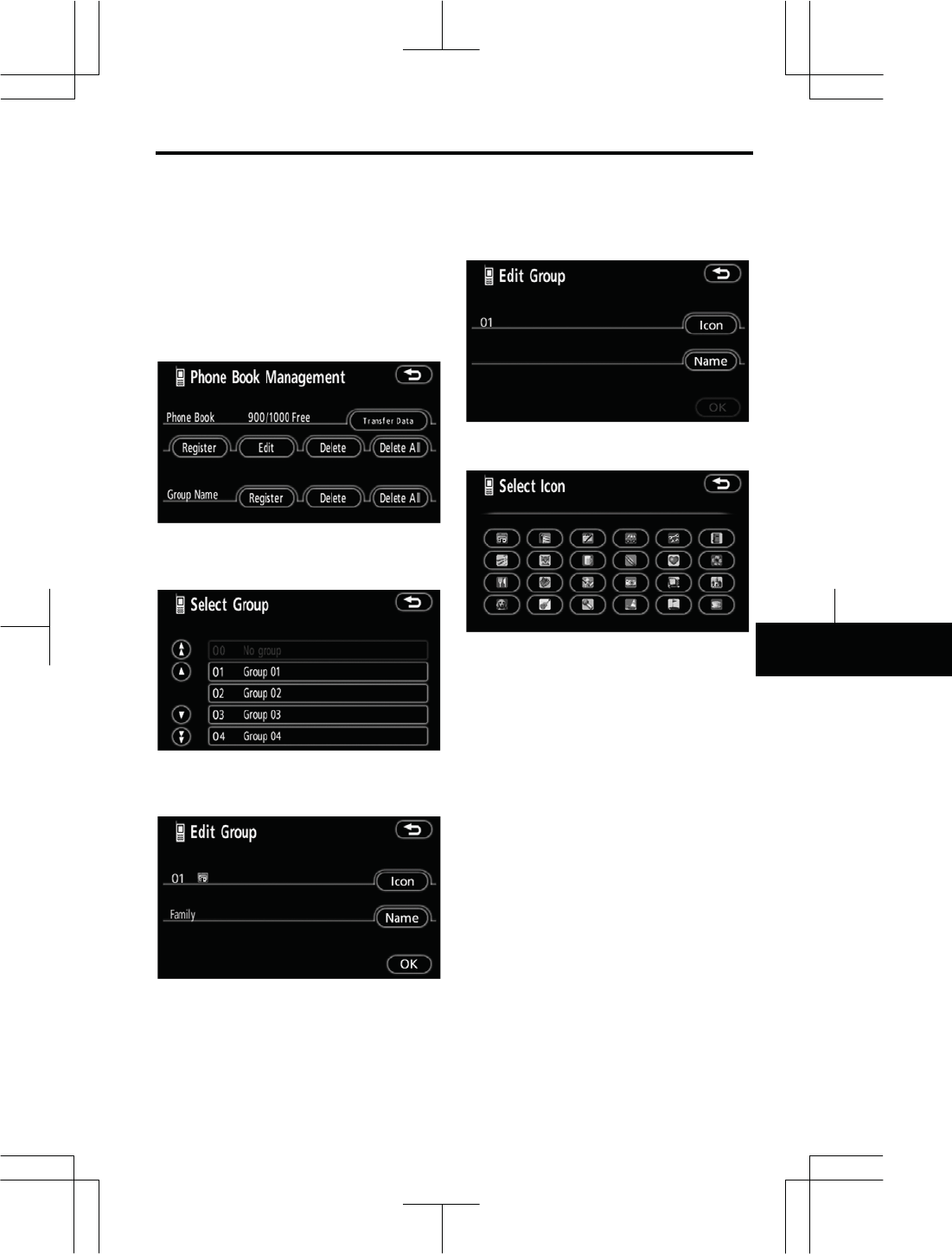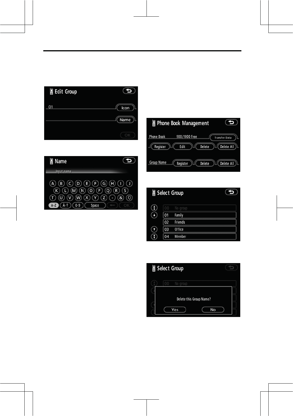 z Display of the phone book screen
