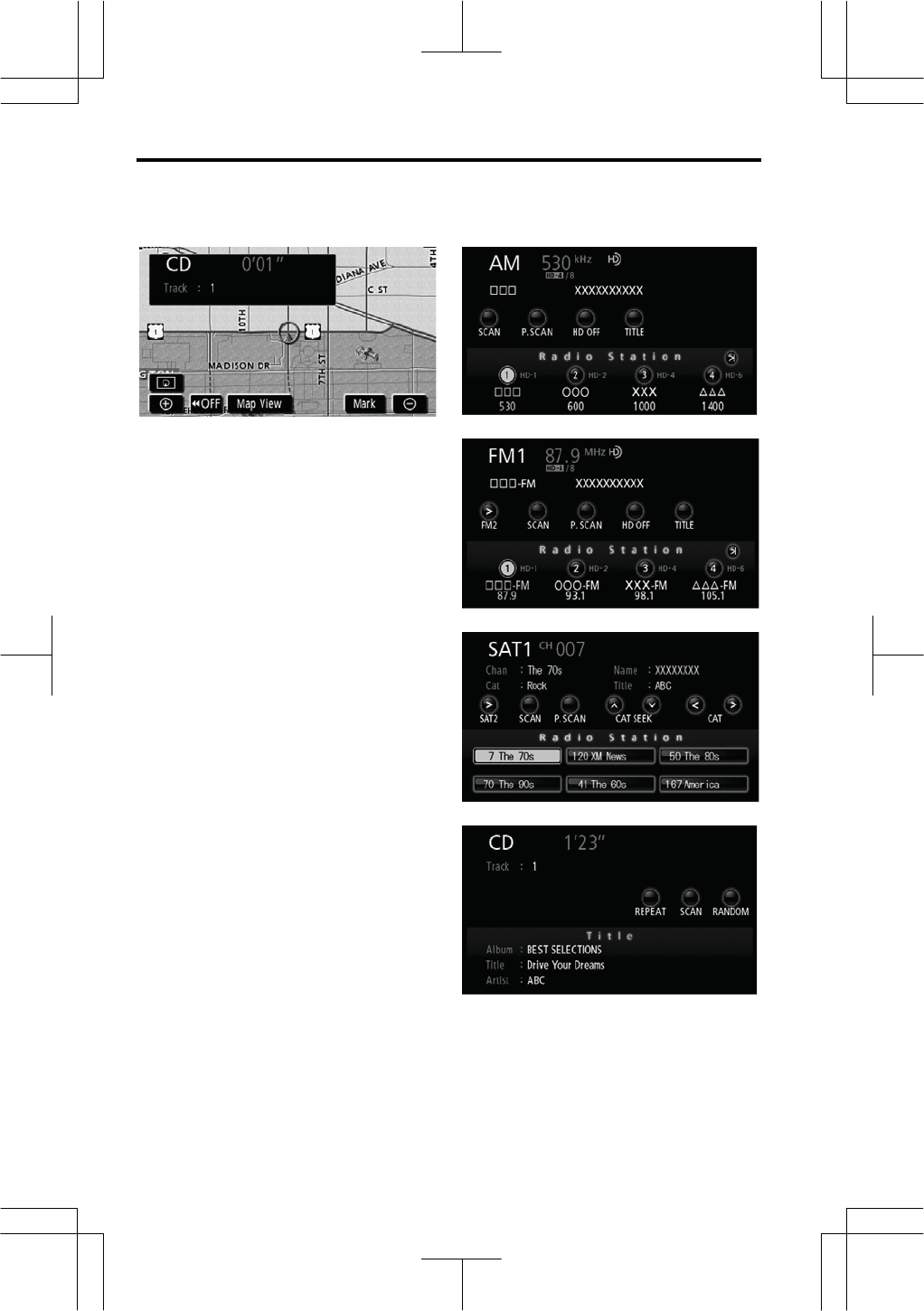 Show XM® NavTraffic information ......... XX