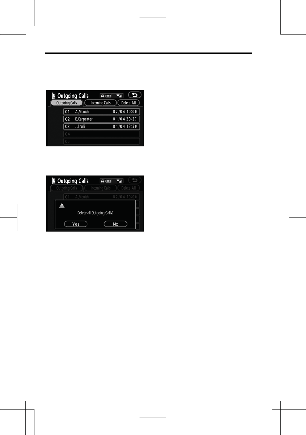 going Calls” or “Incoming Calls”