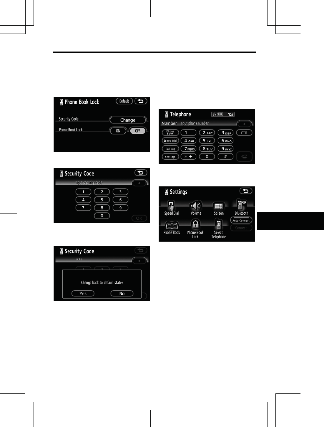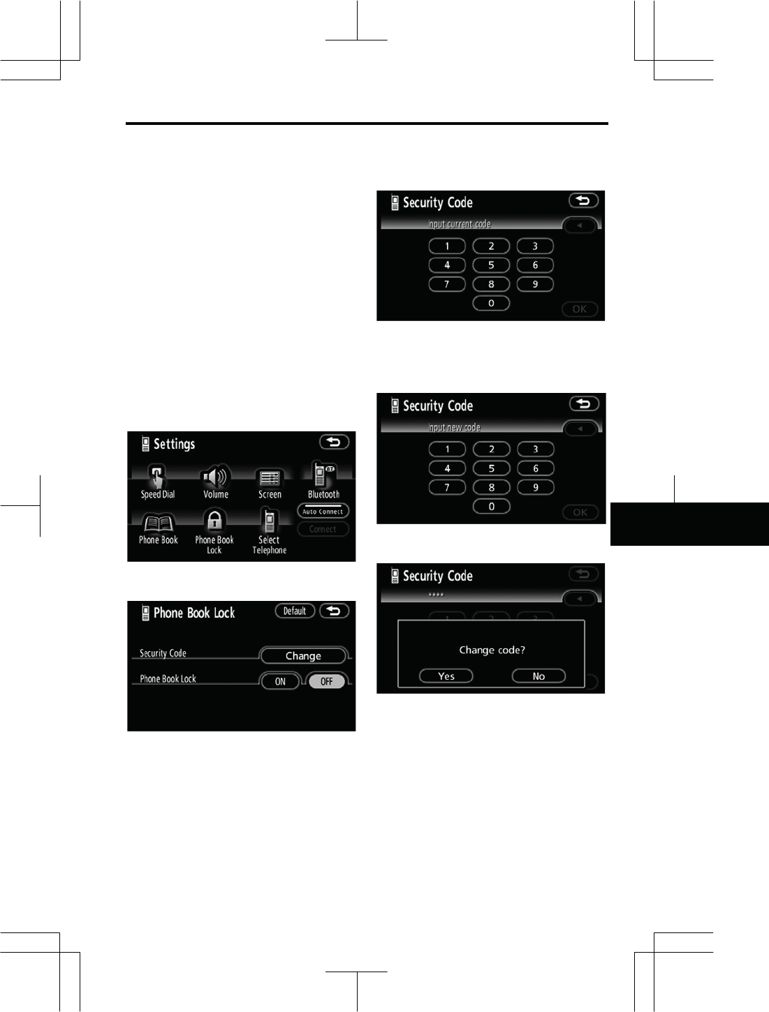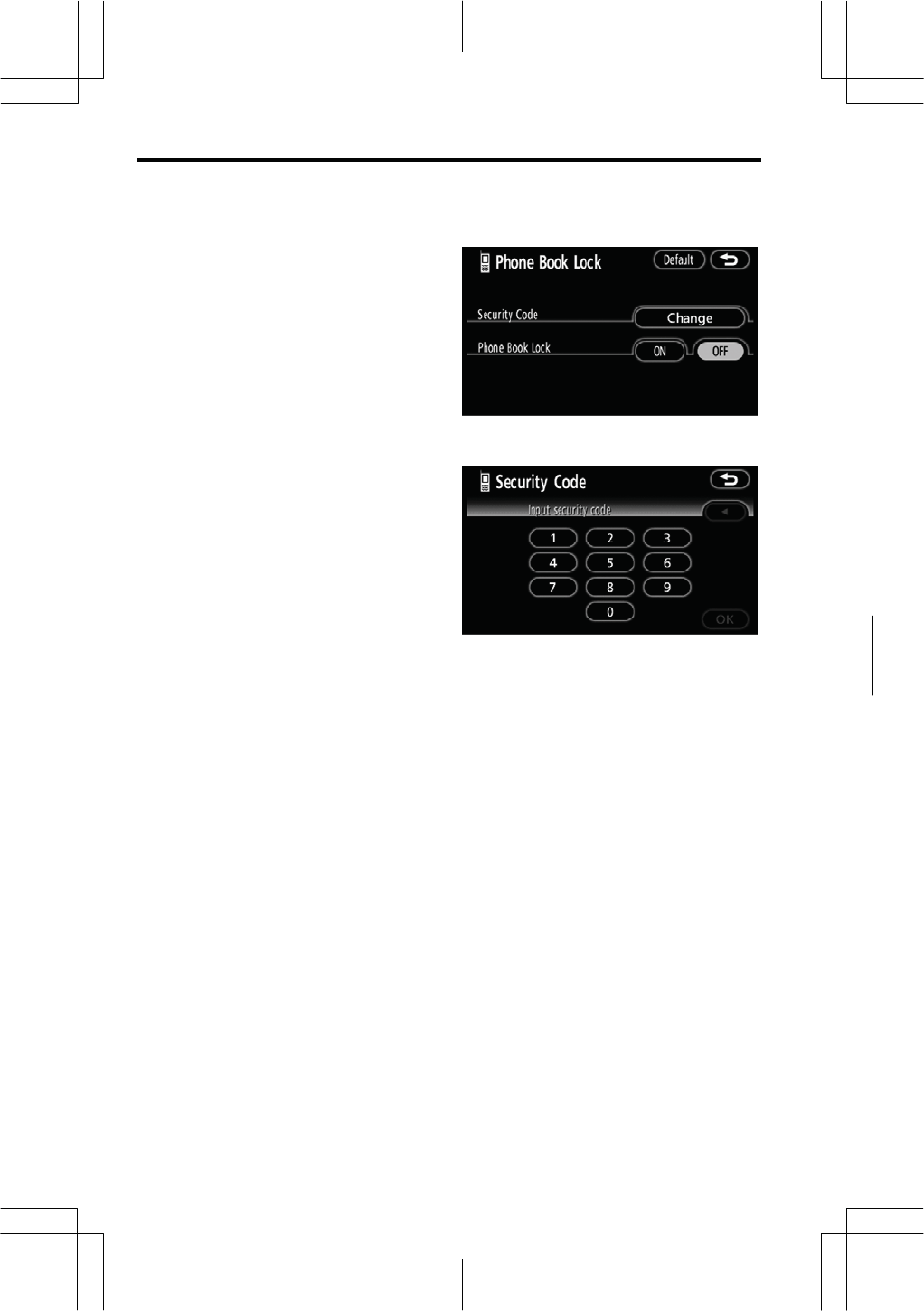 1. Touch “Phone Book Lock”.