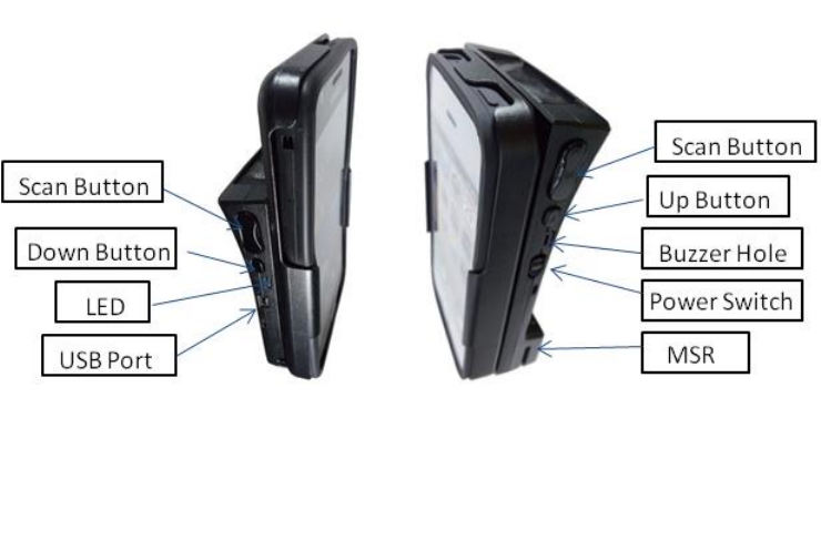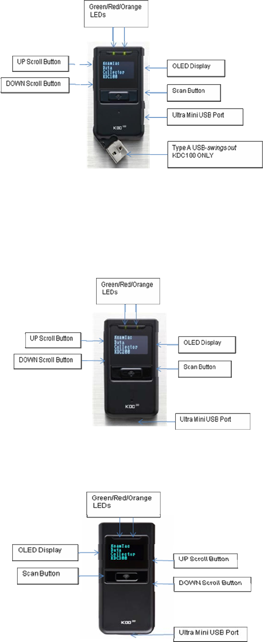 Figure 3 below which indicate placement of scan and scroll buttons, OLED display, LEDs, and ports on
