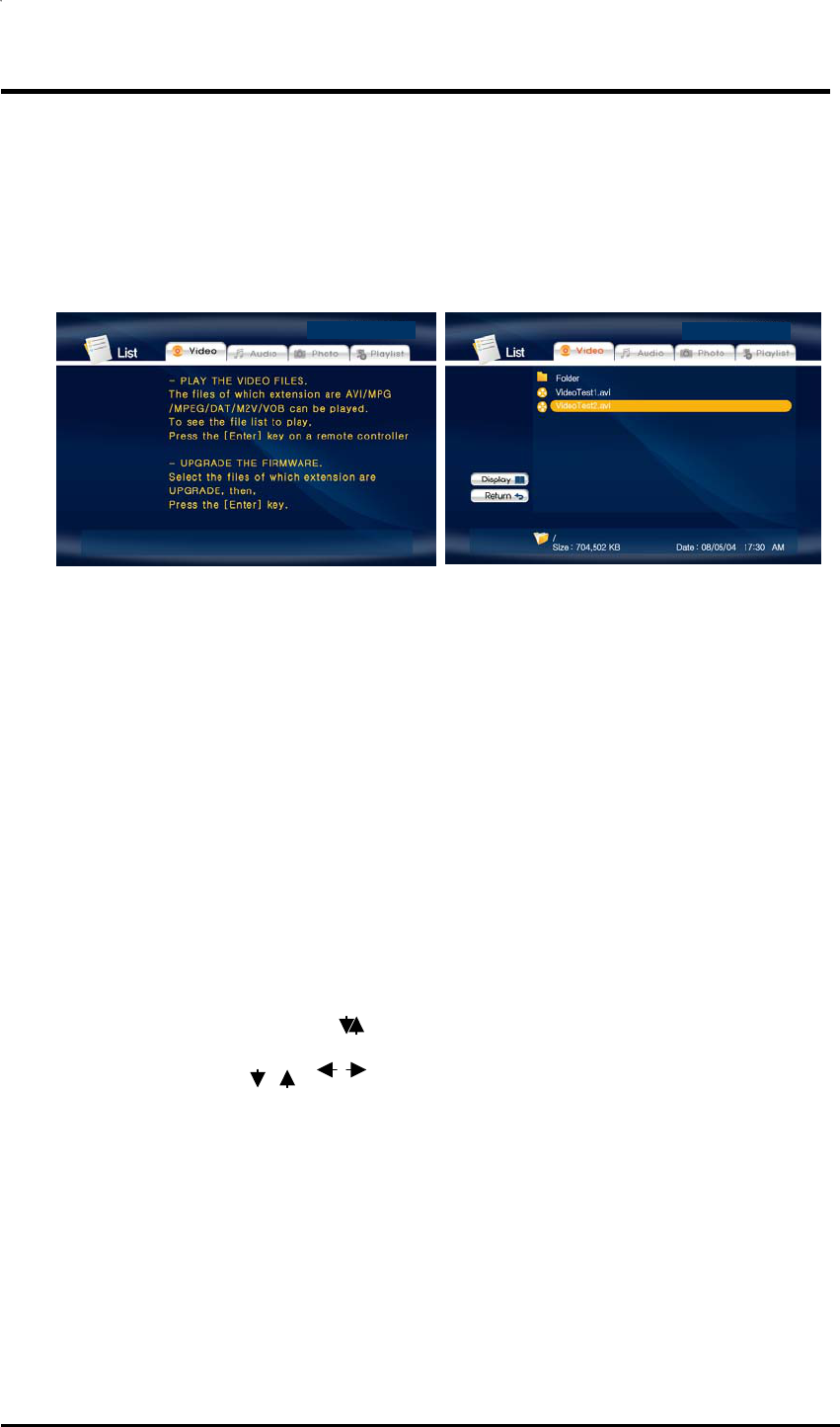 [Video] -> Select the upgrade file -> press [Enter] button then the upgrade is applying automatically.