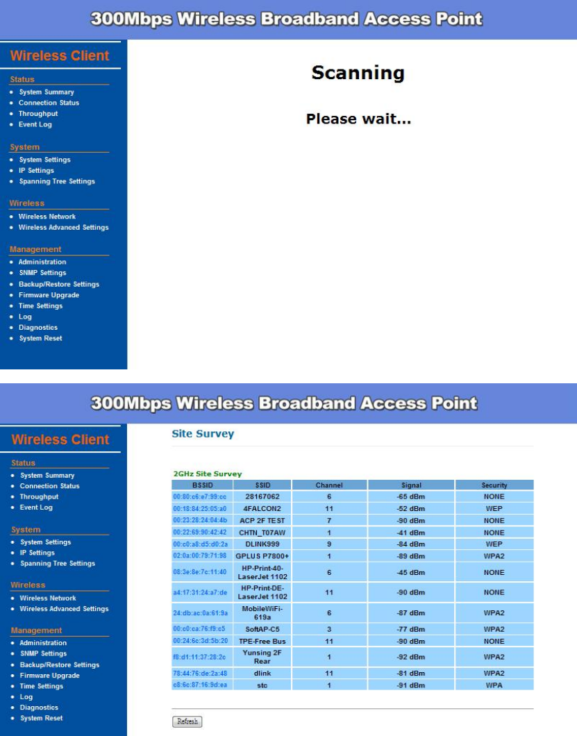 the SSID you specify. In Site Survey page, you can also see the details of all