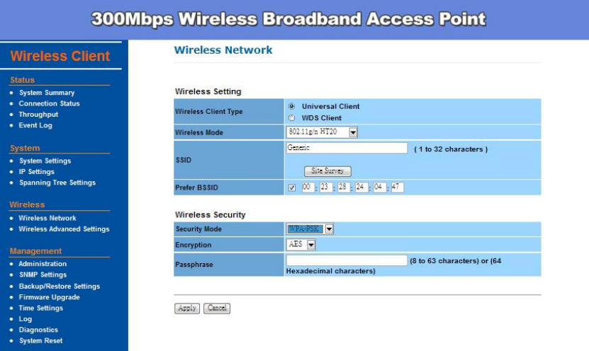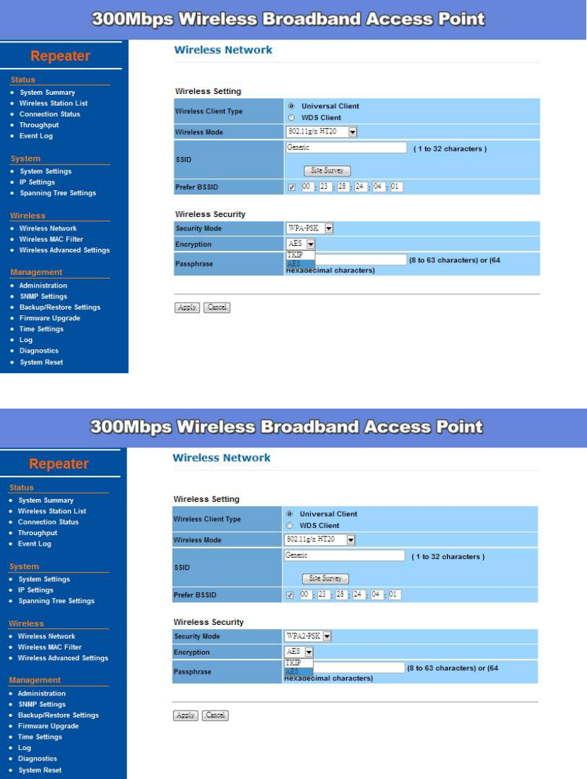 Security), WEP, WPA-PSK, and WPA2 security mode. Once you setup the AP