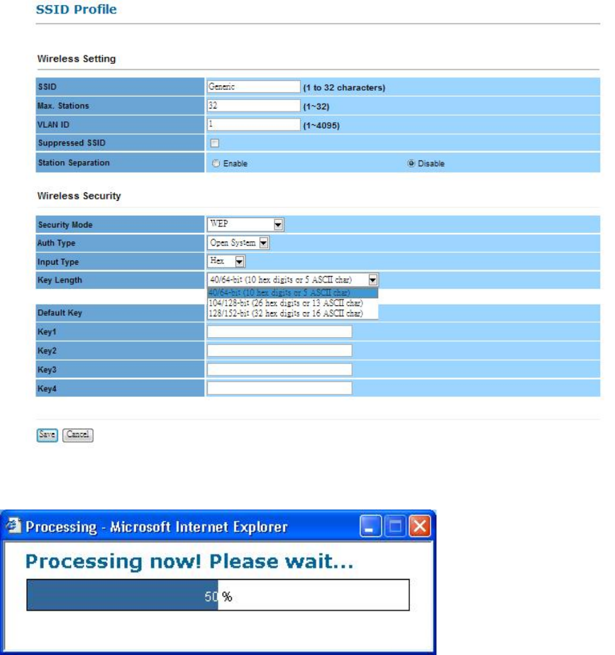 Key Length: Select a key format from the drop-down list. 40/64-bit (10