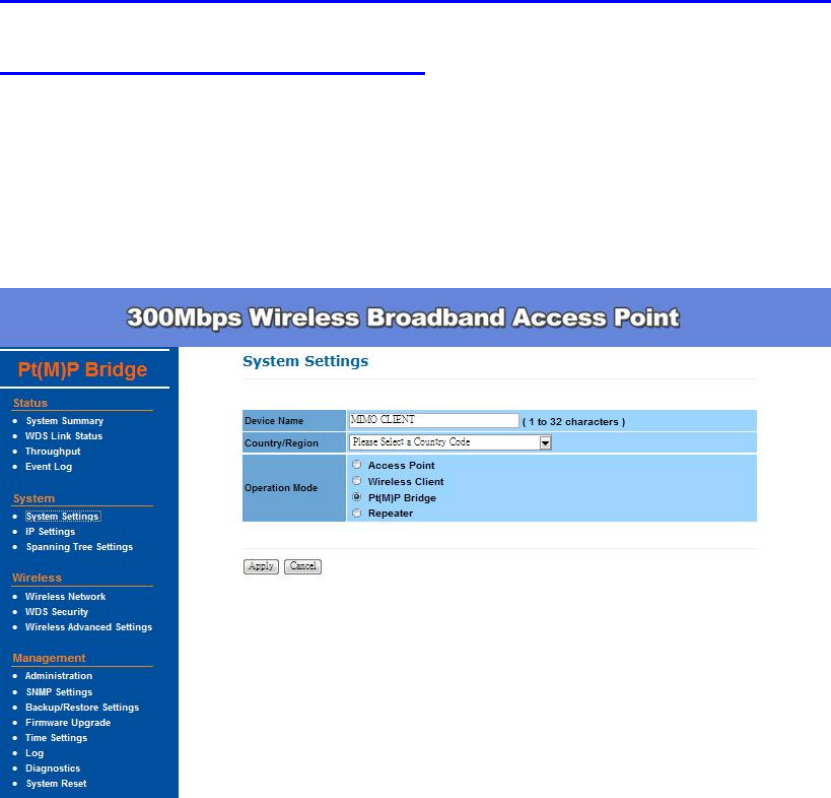 The default operation mode is AP mode. And the first page appears in main