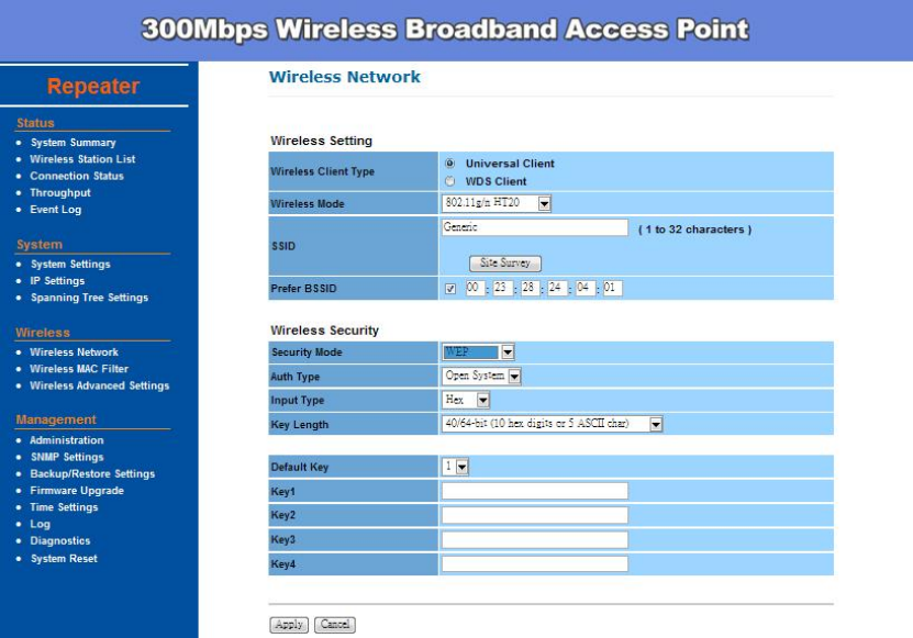 Wireless Configuration – Repeater Mode