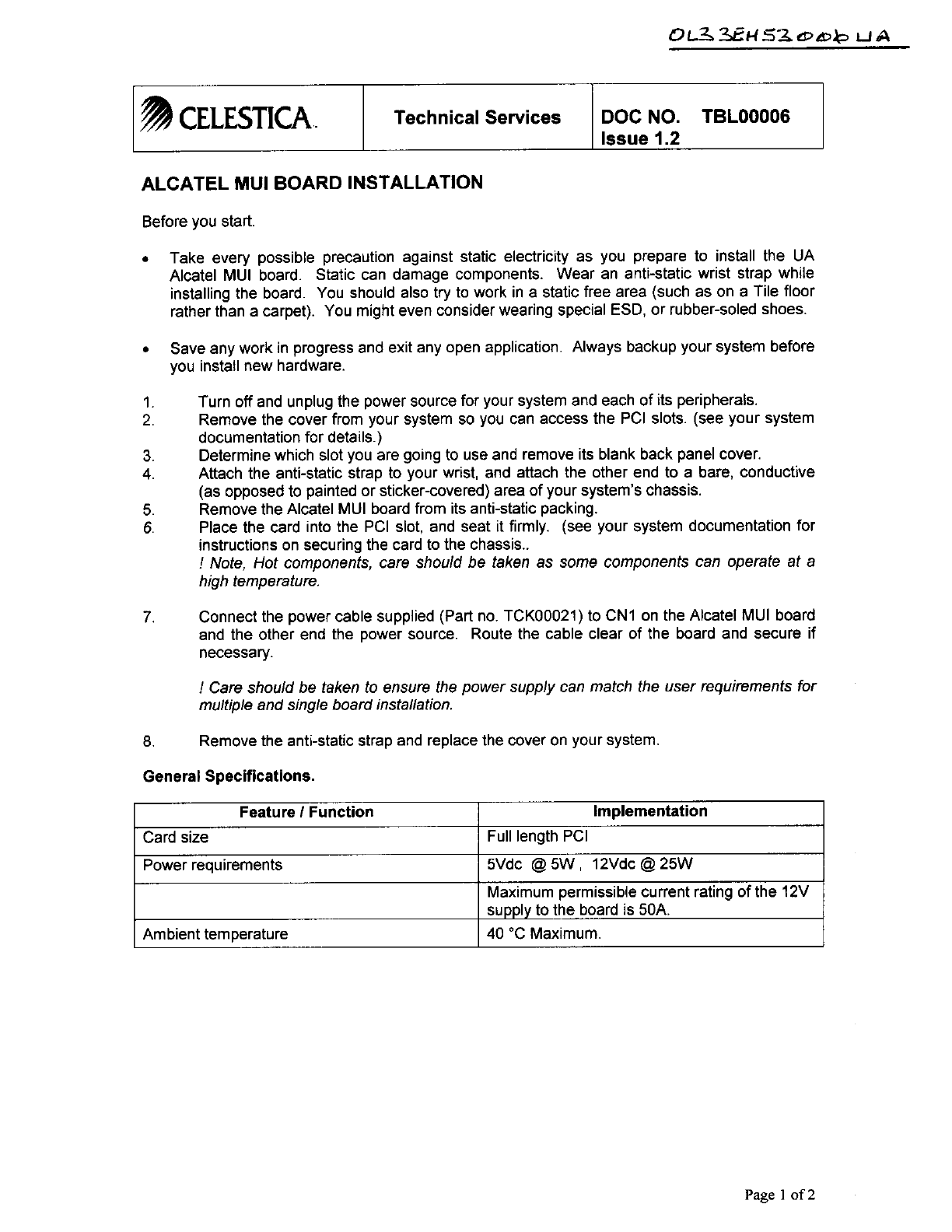 ALE 3EH53000UA MUI Board User Manual 57739