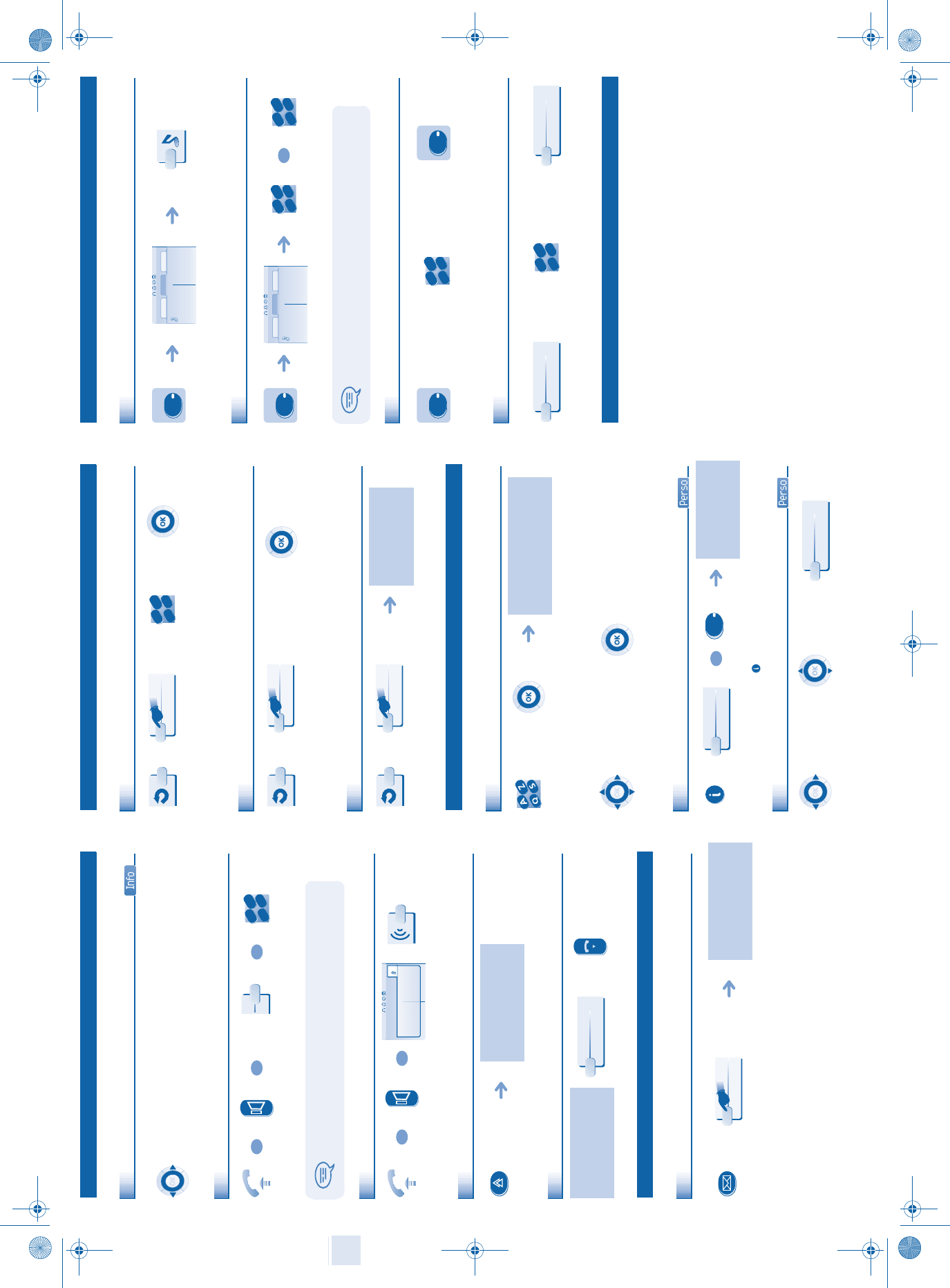 (long press) ; during a conversation, provides access to welcome screens (Menu, In-