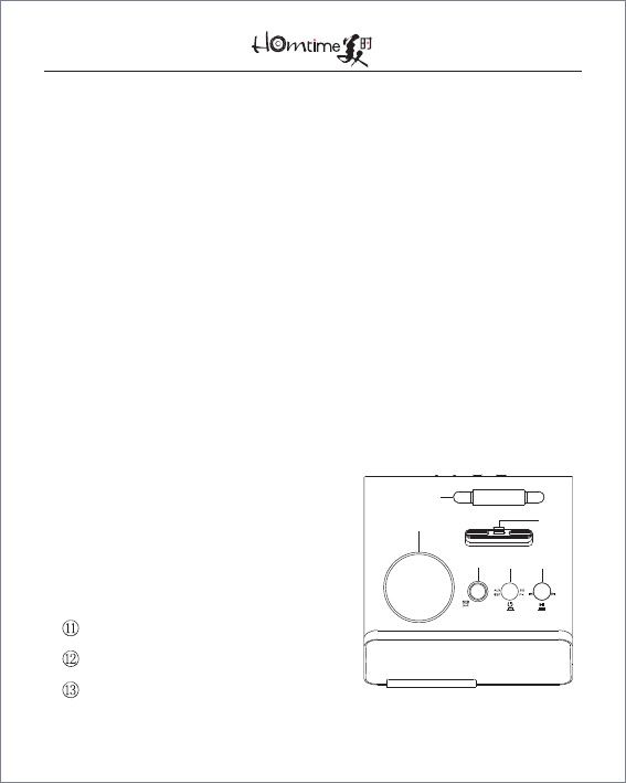 ● Dock your iPhone onto ⑧ when the unit is on. Time will be