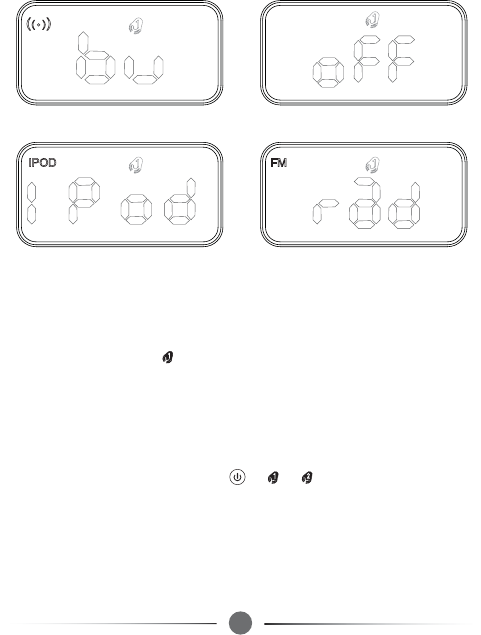 press button, LCD screen displays OFF→IPOD→FM→BUZZ (as