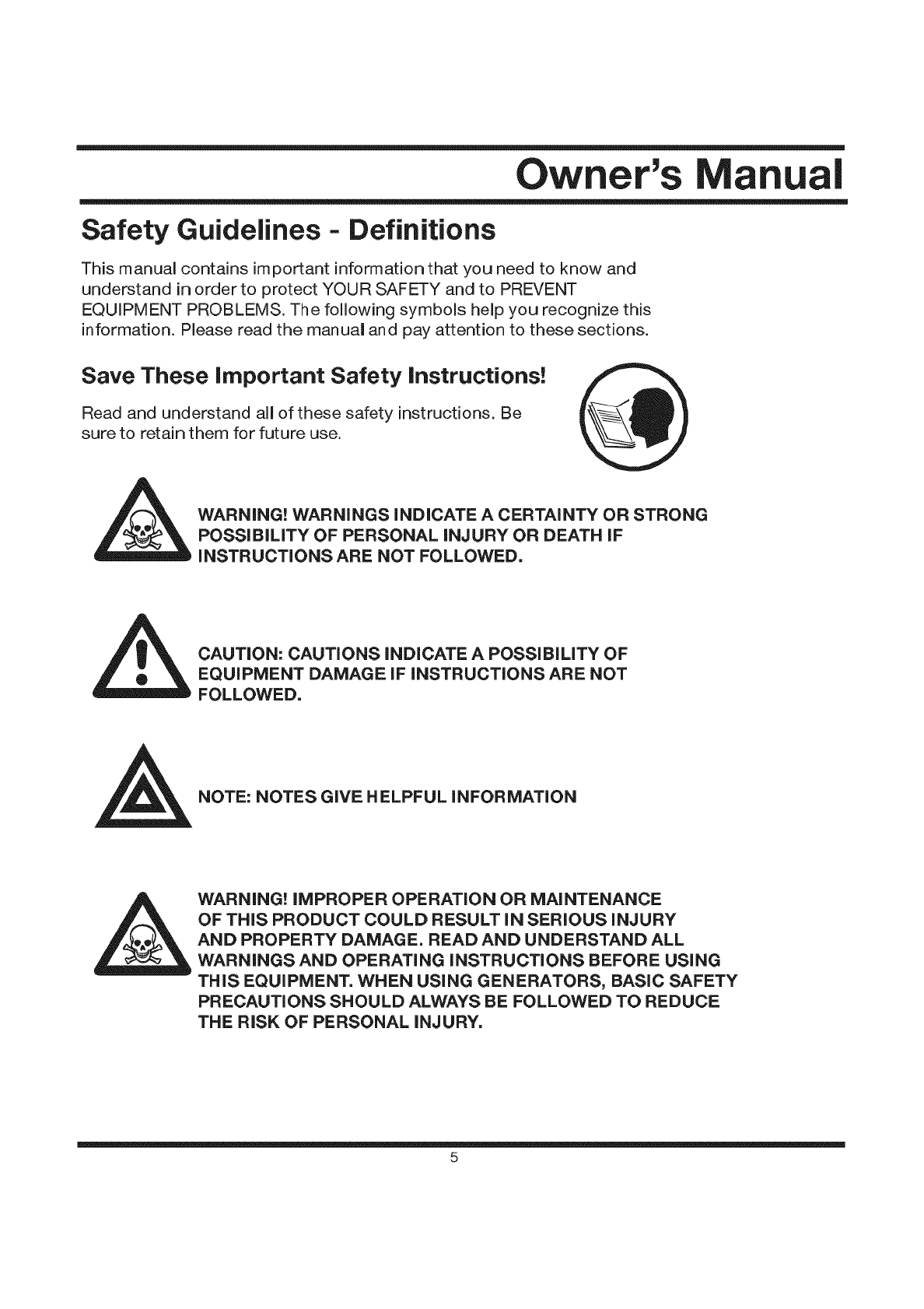 WARNING! READ AND UNDERSTAND ALL SAFETY PRECAUTIONS