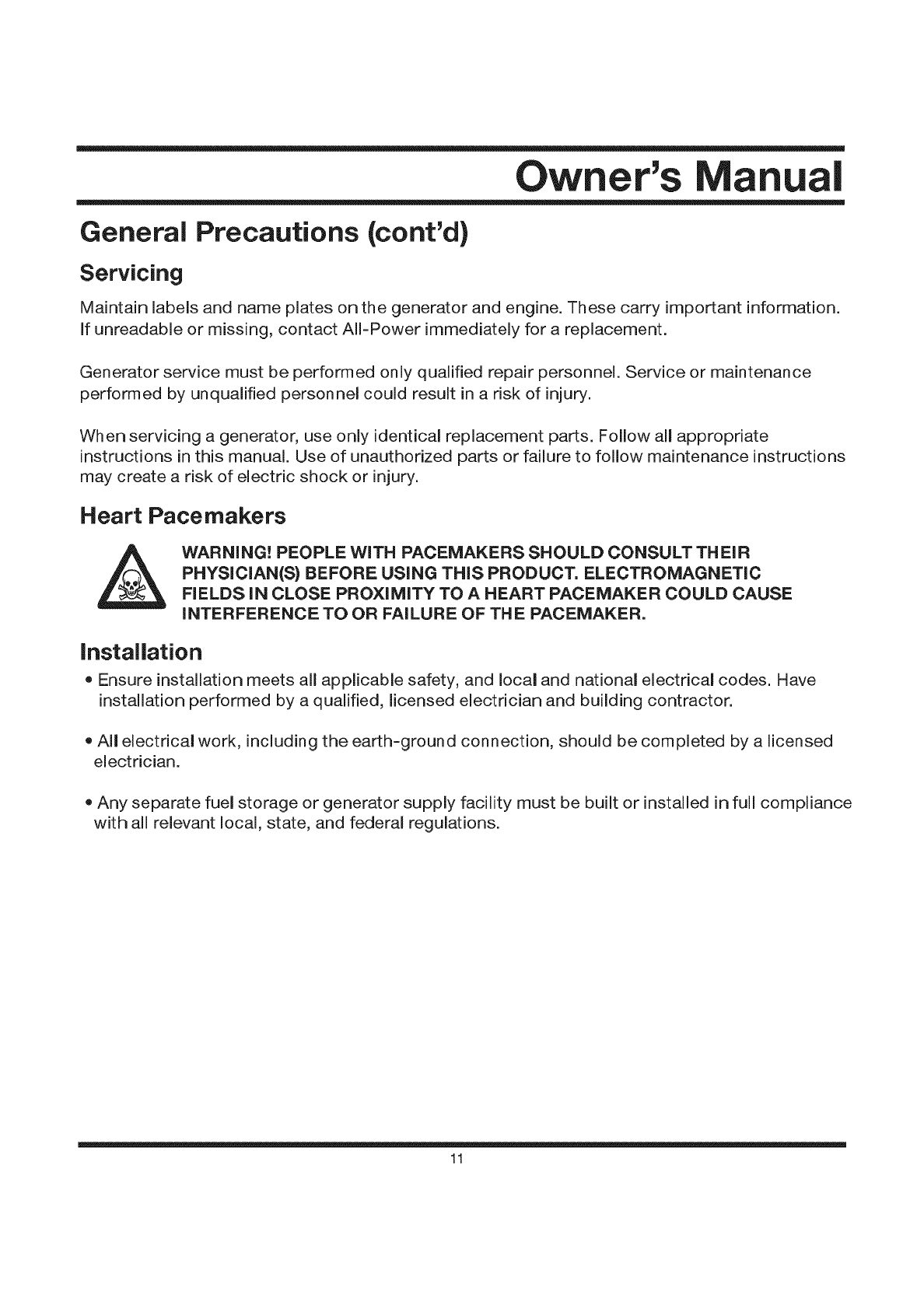 User Manual: ALL ALL POWER AMERICA Generator Manual ALL POWER AMERICA Generator Owner's Manual, ALL POWER AMERICA Generator installation guides