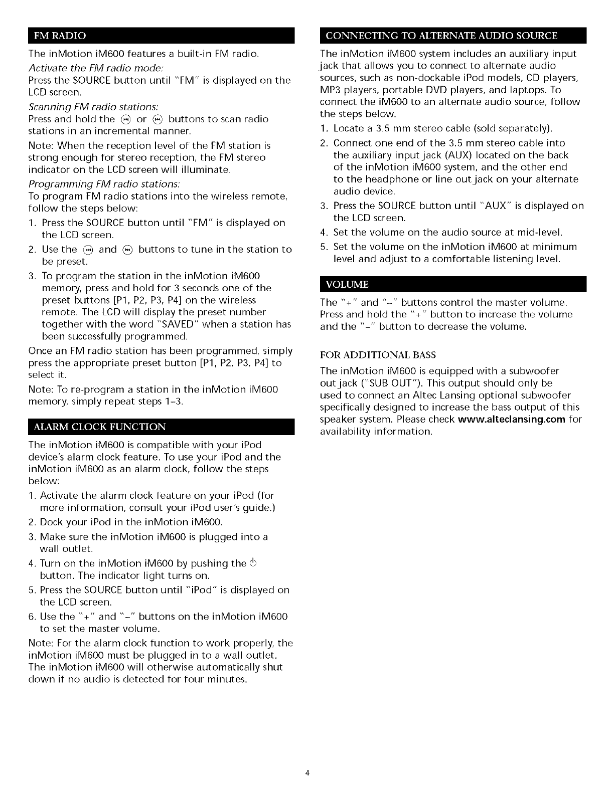 • Set the volume on the inMotion iM600 at minimum