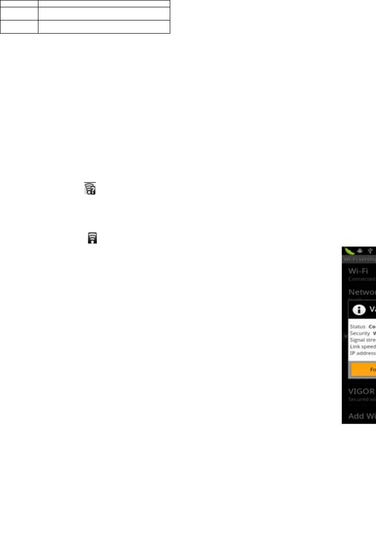 Wi-Fi settings, The status box will show this icon ( ) when open available wireless network