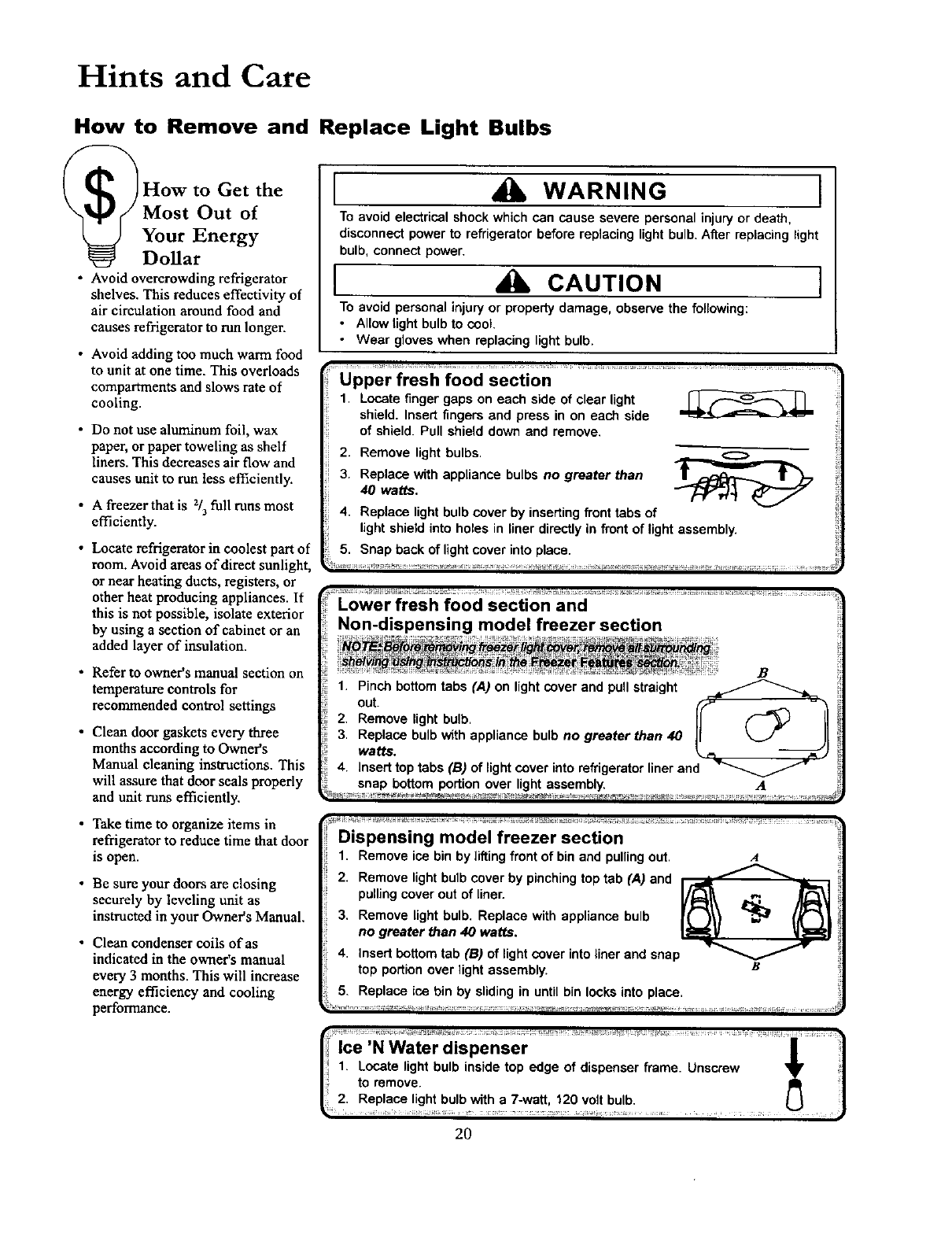 How to Remove and Replace Light Bulbs ........................ 20