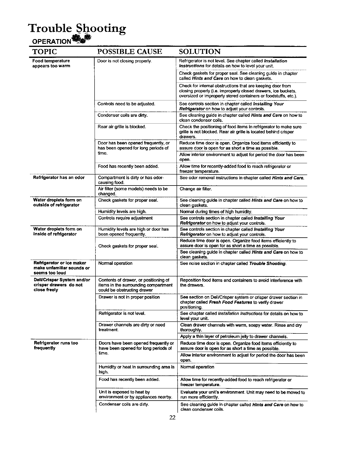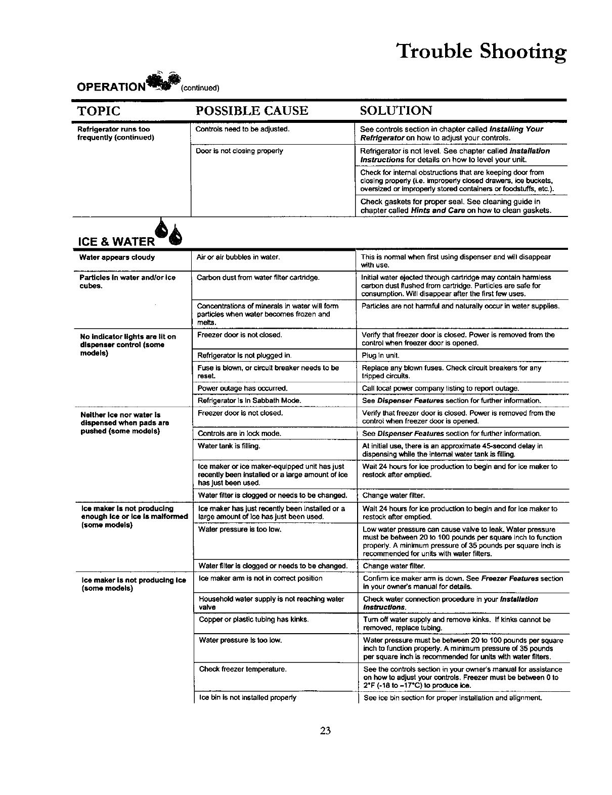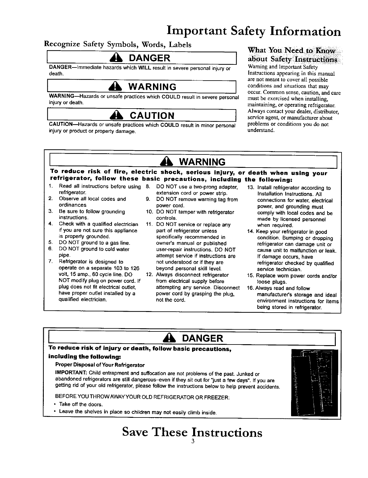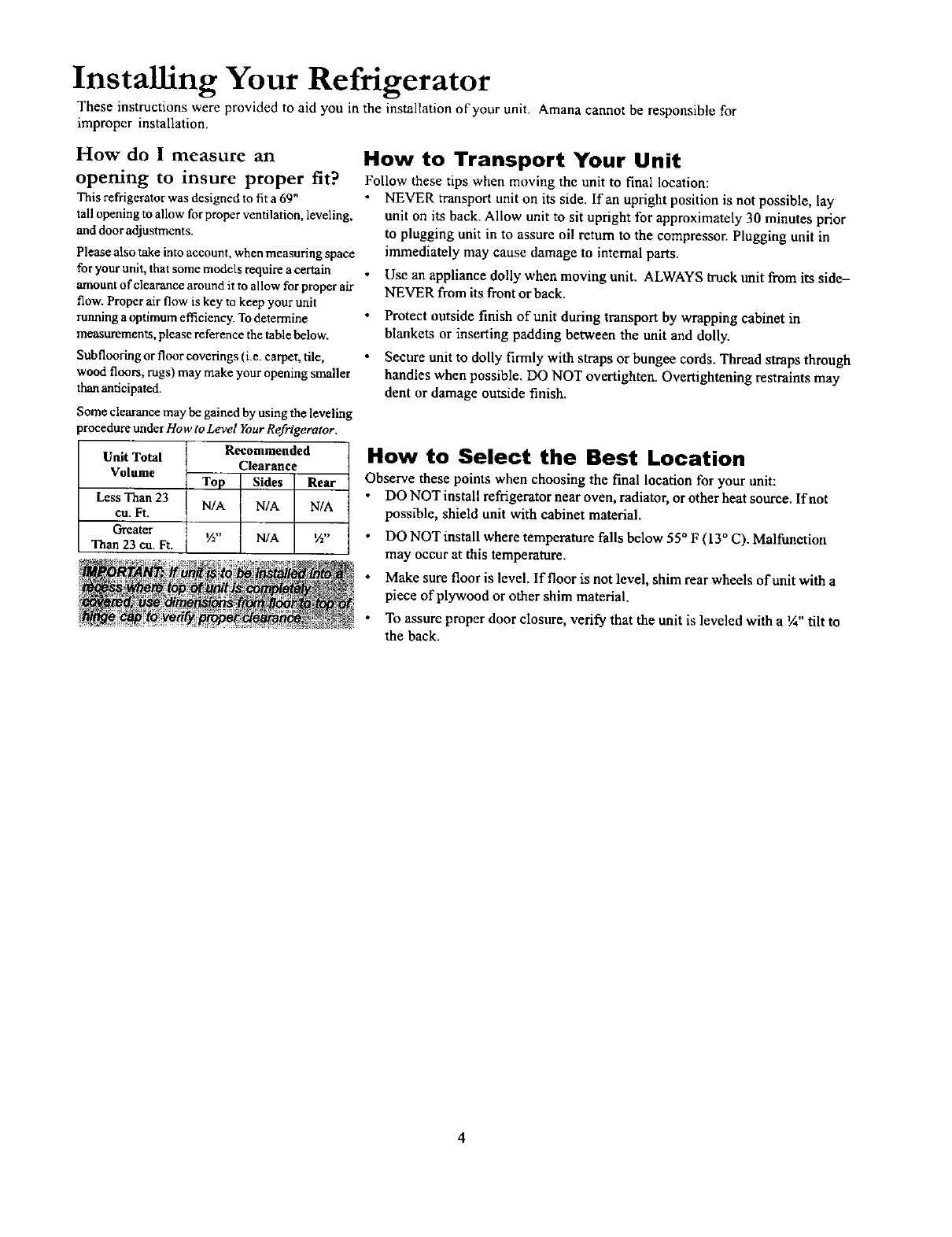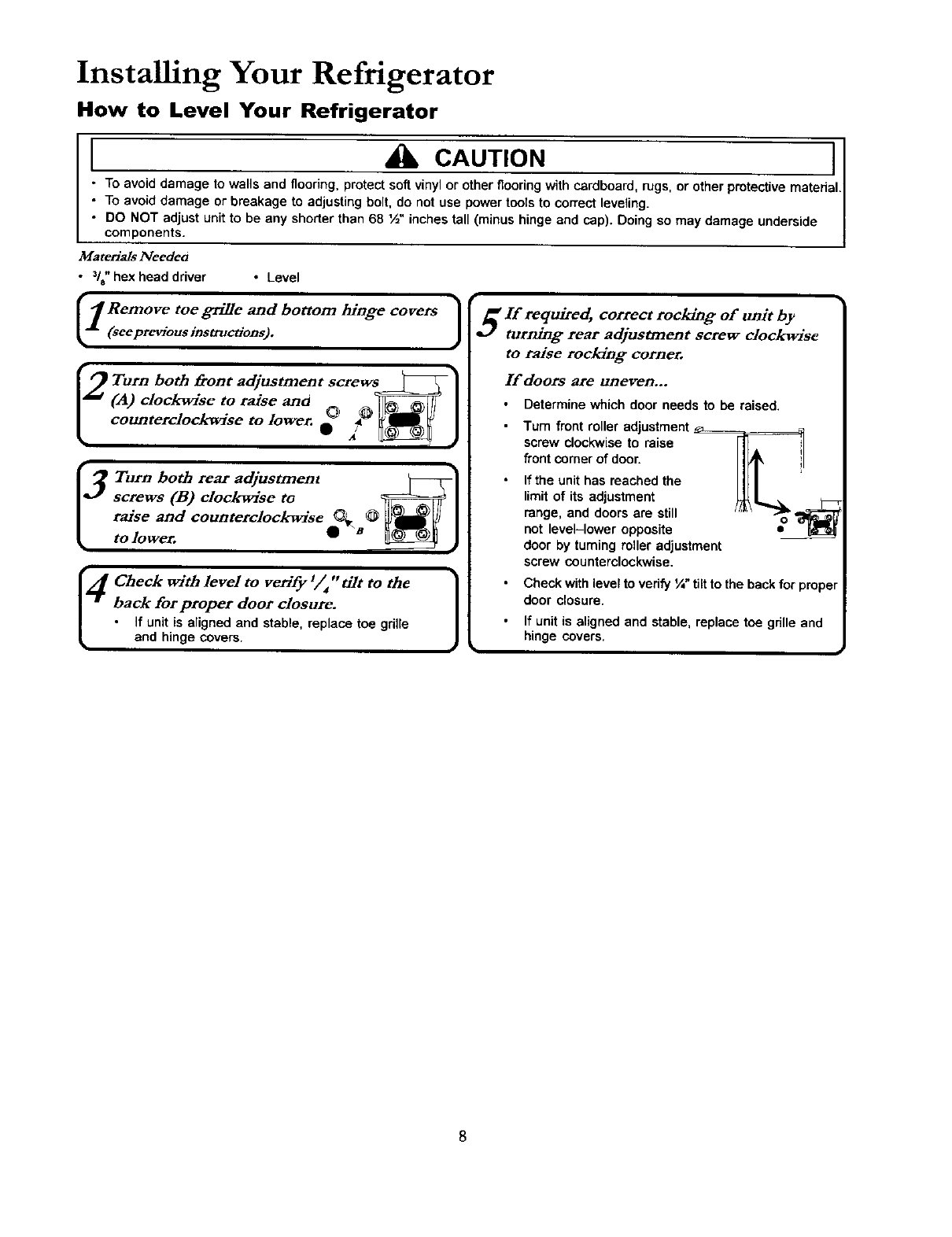 How to Level Your Refrigerator............................................ 8