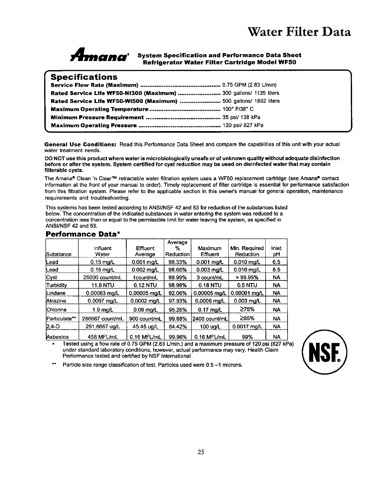 Performance tested and certifiedby NSF International