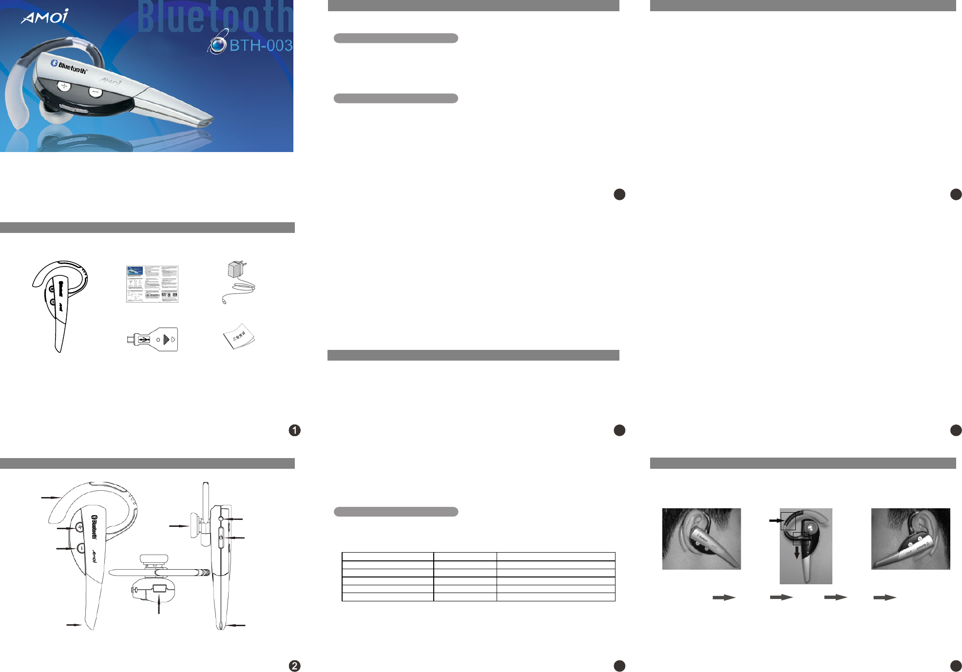 Congratulations on selecting Amoi Bluetooth Headset BTH-003!